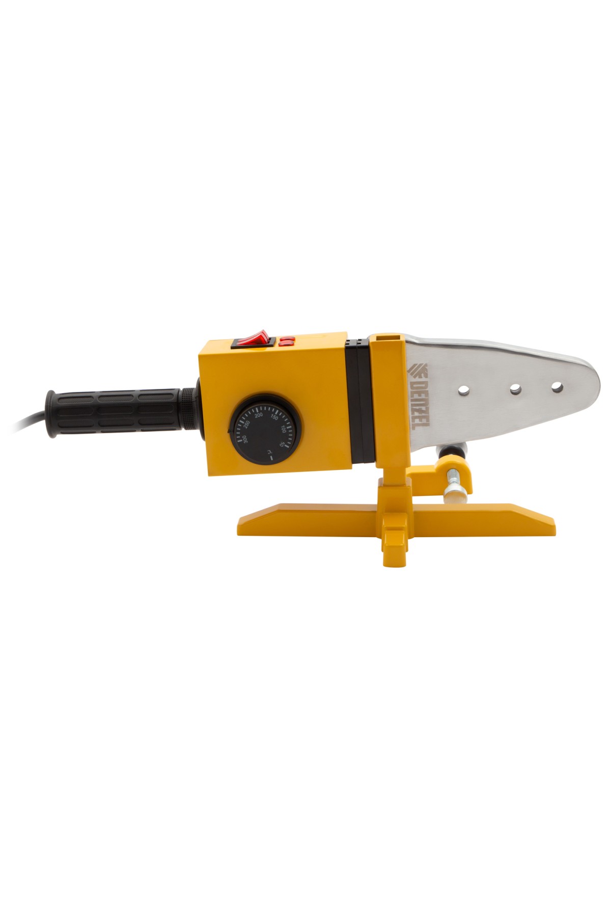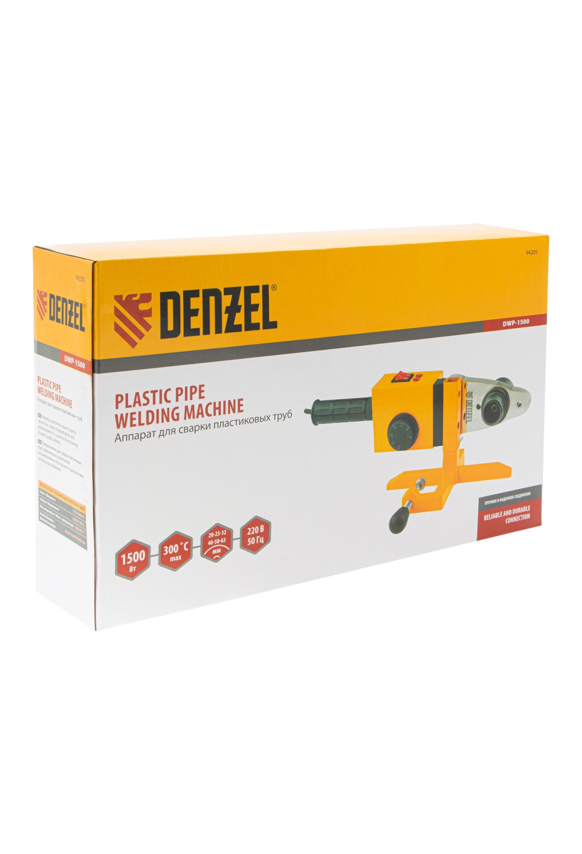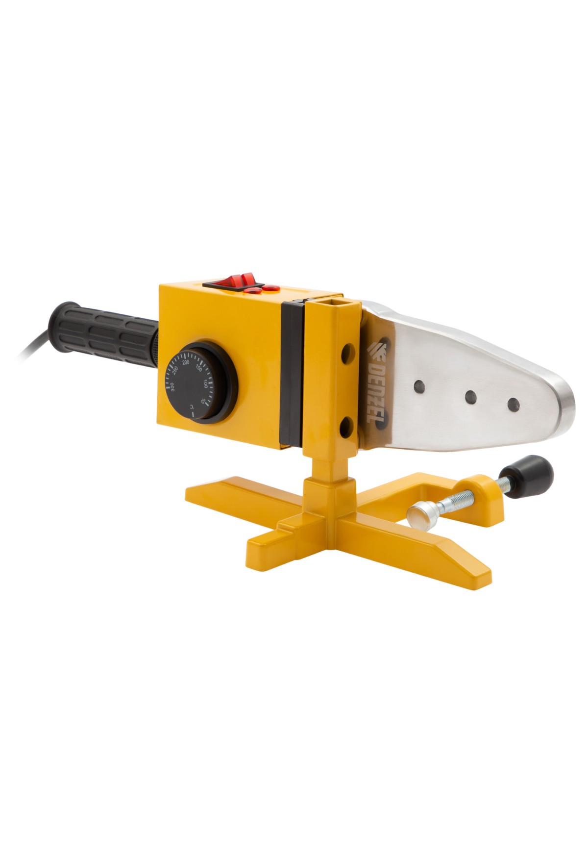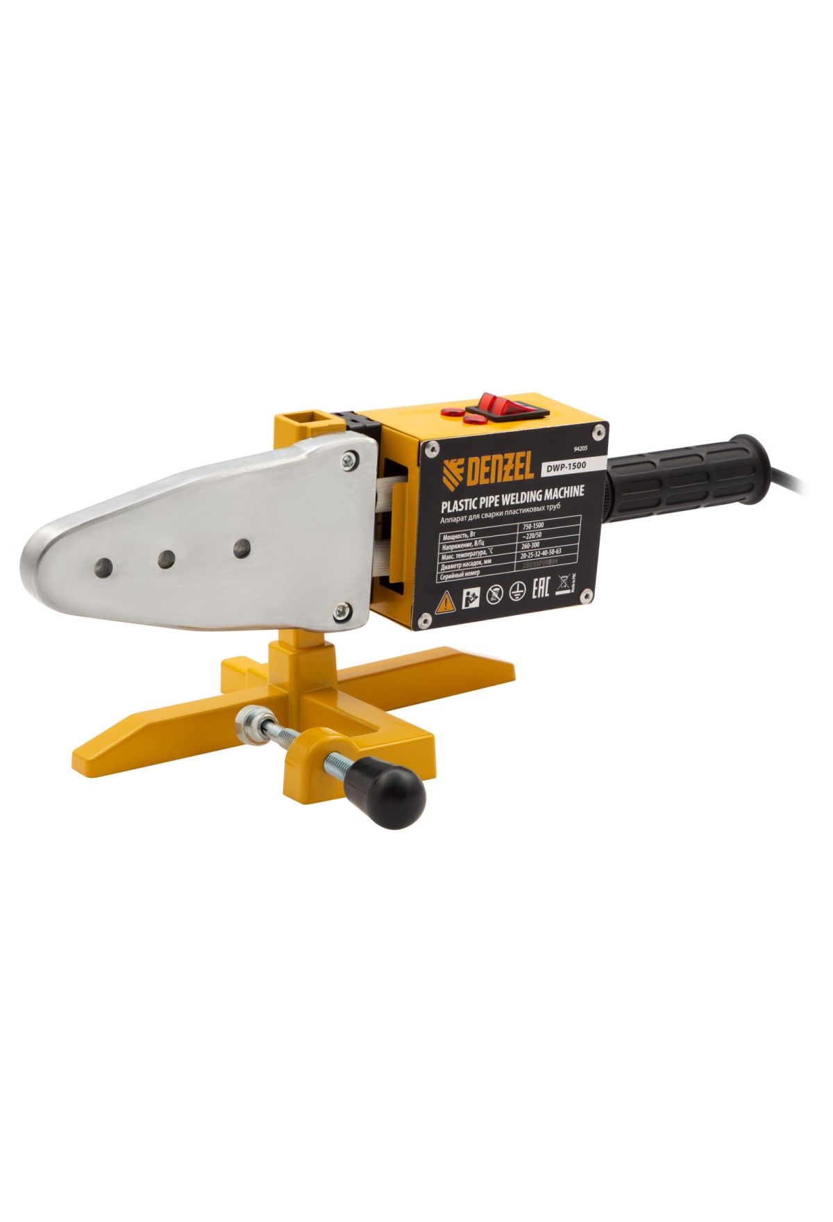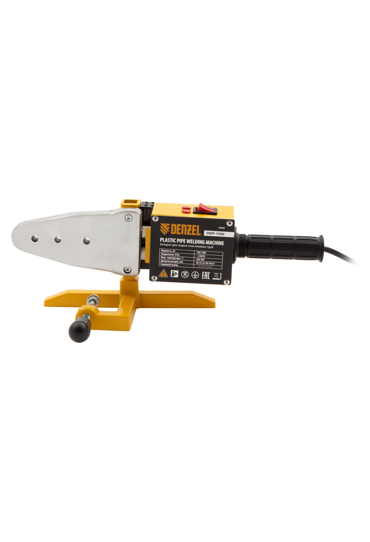 Аппарат для сварки пластиковых труб Denzel DWP-1500 94205 мощностью 1500 Вт предназначен для соединения полипропиленовых и полиэтиленовых труб диаметром 20, 25, 32, 40, 50 и 63 мм при нагреве до 260-300 °C. Незаменим во время ремонта и прокладки систем горячего и холодного водоснабжения, отопления, при проведении сантехнических работ с канализационными трубами и т.д. Питается от однофазной бытовой сети 220 В и имеет простой принцип работы, поэтому оптимален для использования в квартире и частном доме.