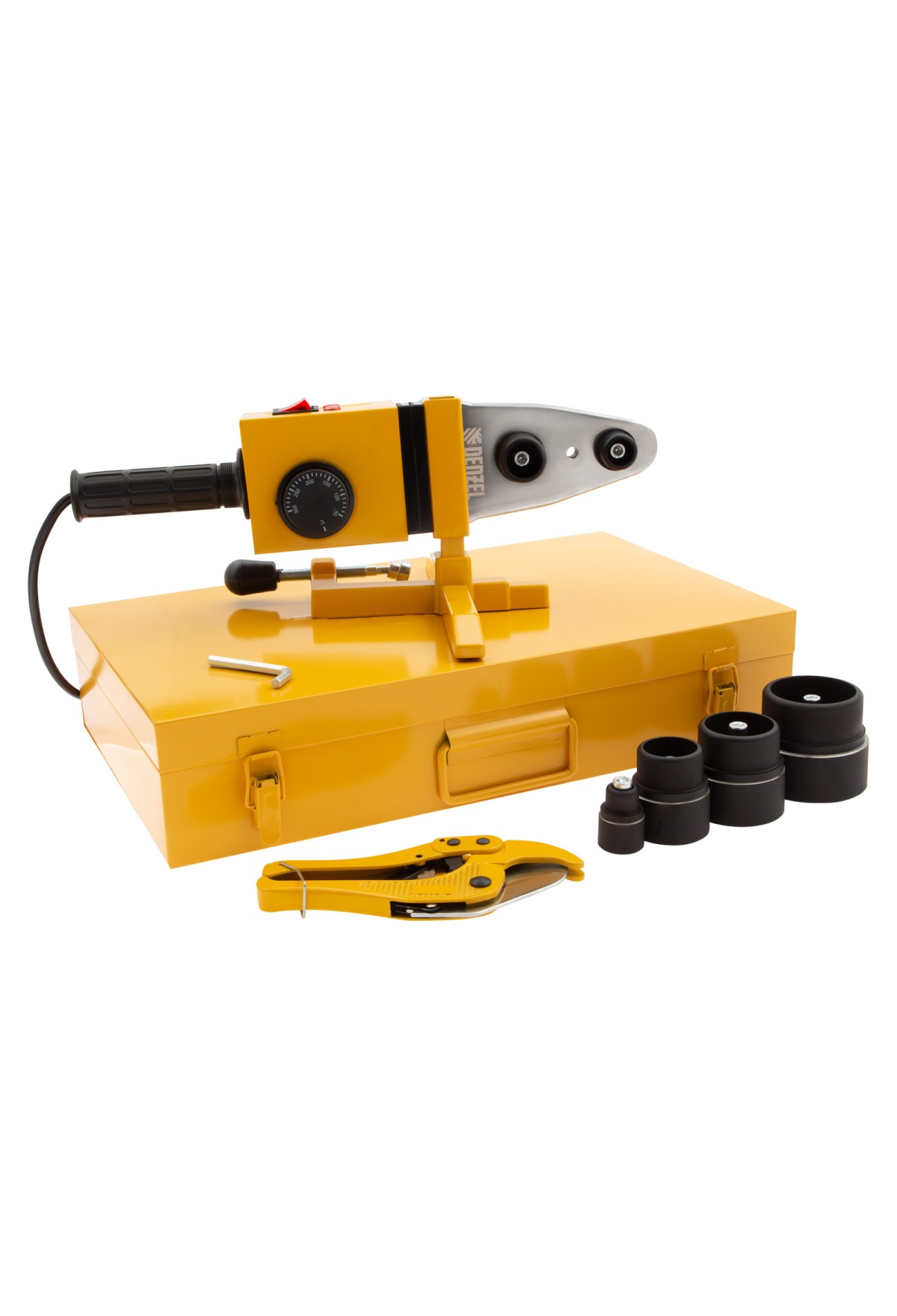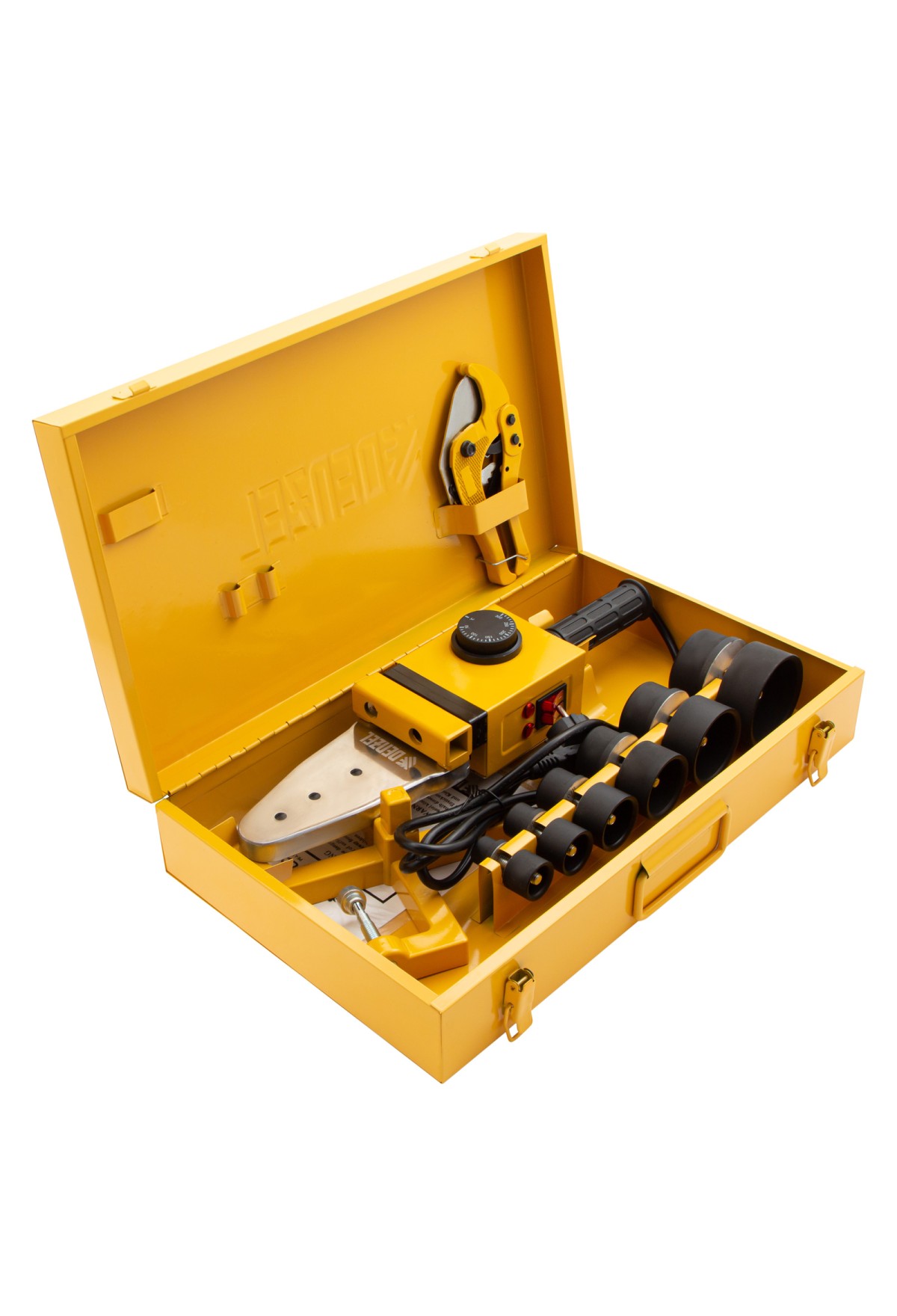 | Комплектация | Аппарат для сварки палстиковых труб - 1 штИмбусовый ключ - 1 штТруборез - 1 штМеталлический кейс для хранения - 1 штПарные сменные насадки - 6 штРуководство по эксплуатации и гарантийный талон - 1 шт |