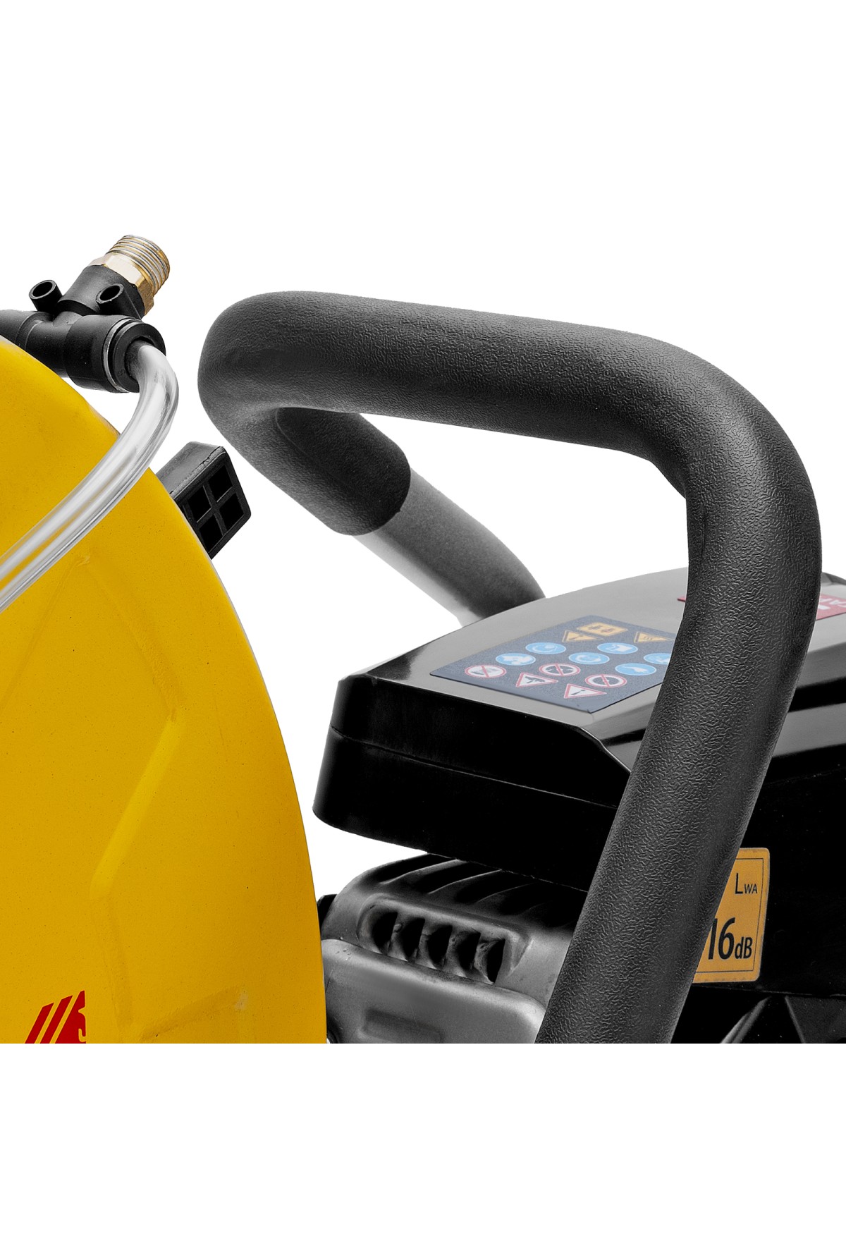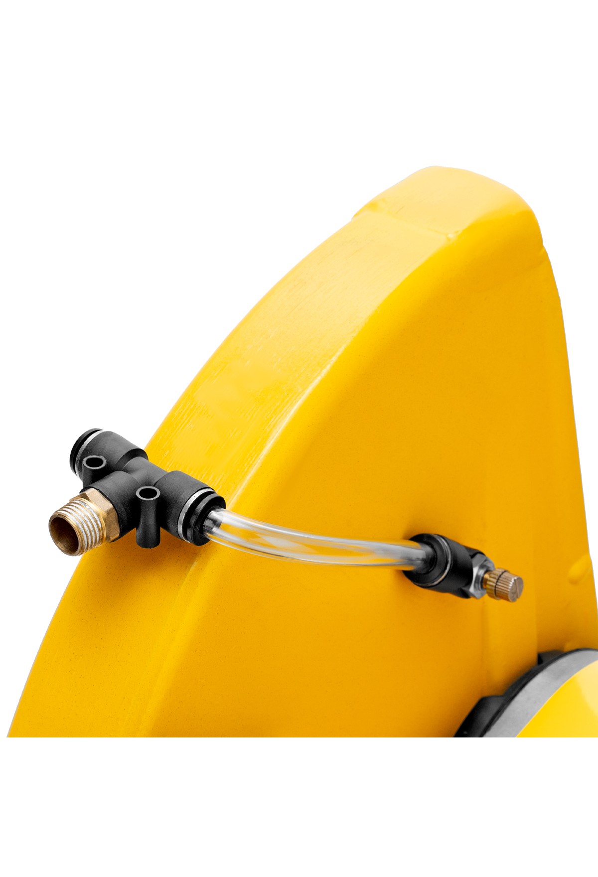 Бензорез оснащен универсальным штуцером для подачи воды. Использование водяного охлаждения позволяет уменьшить количество образующейся пыли и снизить нагрузку на двигатель.