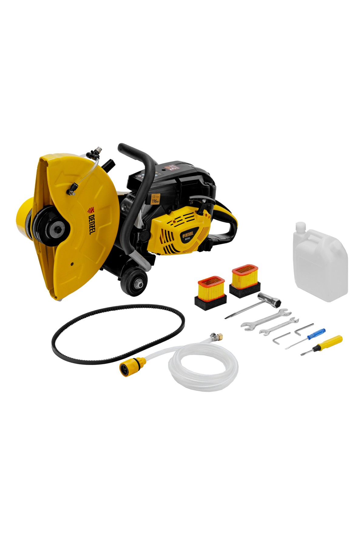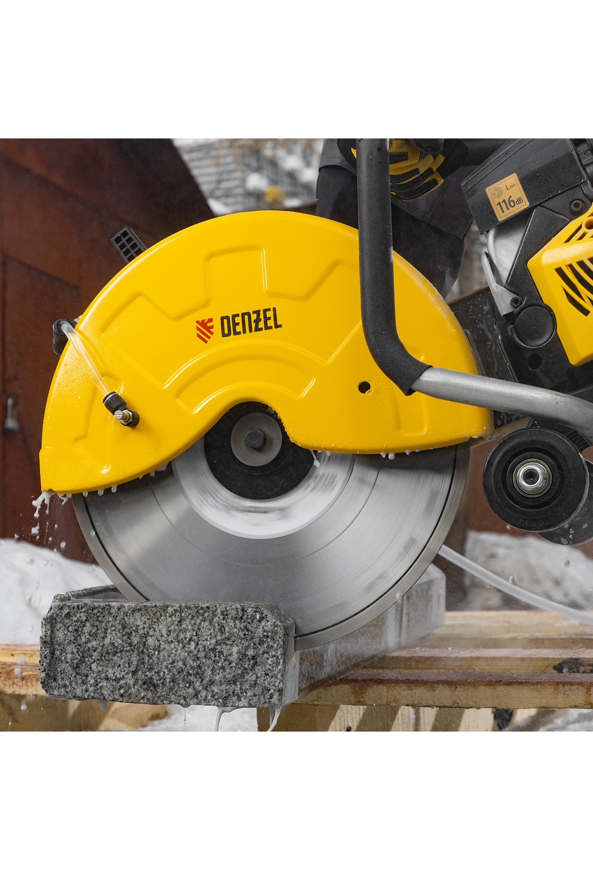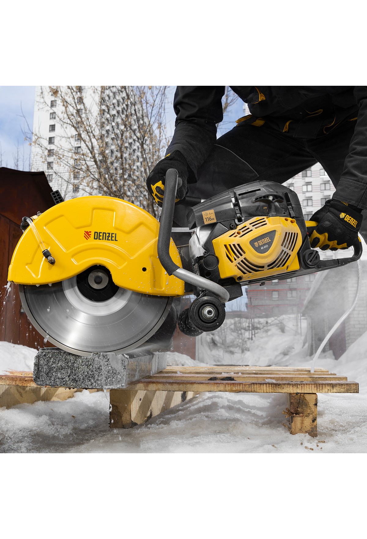 Бензорез Denzel MC-6335 66301 предназначен для работы с бетоном, асфальтом, чугуном, алюминием, сталью и другими твердыми материалами, а также с пластиком. Оптимален для проведения демонтажных работ на строительной площадке, также может применяться во время спасательных операций. Для работы используются алмазные, абразивные и зубчатые диски диаметром 350 мм. Эффективное решение поставленных задач обеспечивает двигатель объемом 65 см3 и мощностью 4,5 л.с., для удобного выбора режущего диска имеется два посадочных диаметра: 20 и 25,4 мм.