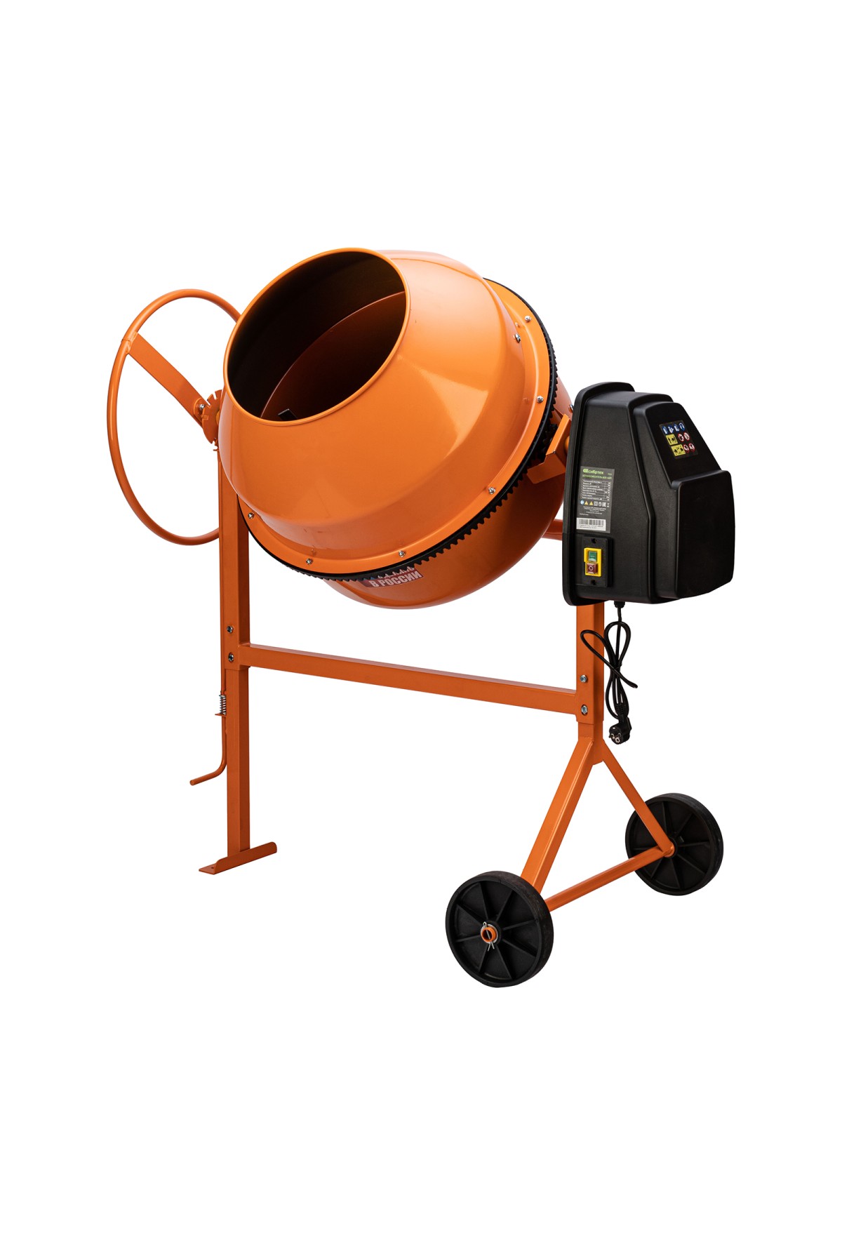 - Удобная загрузка и выгрузка смеси — барабан легко фиксируется в наклонном положении при помощи педали.