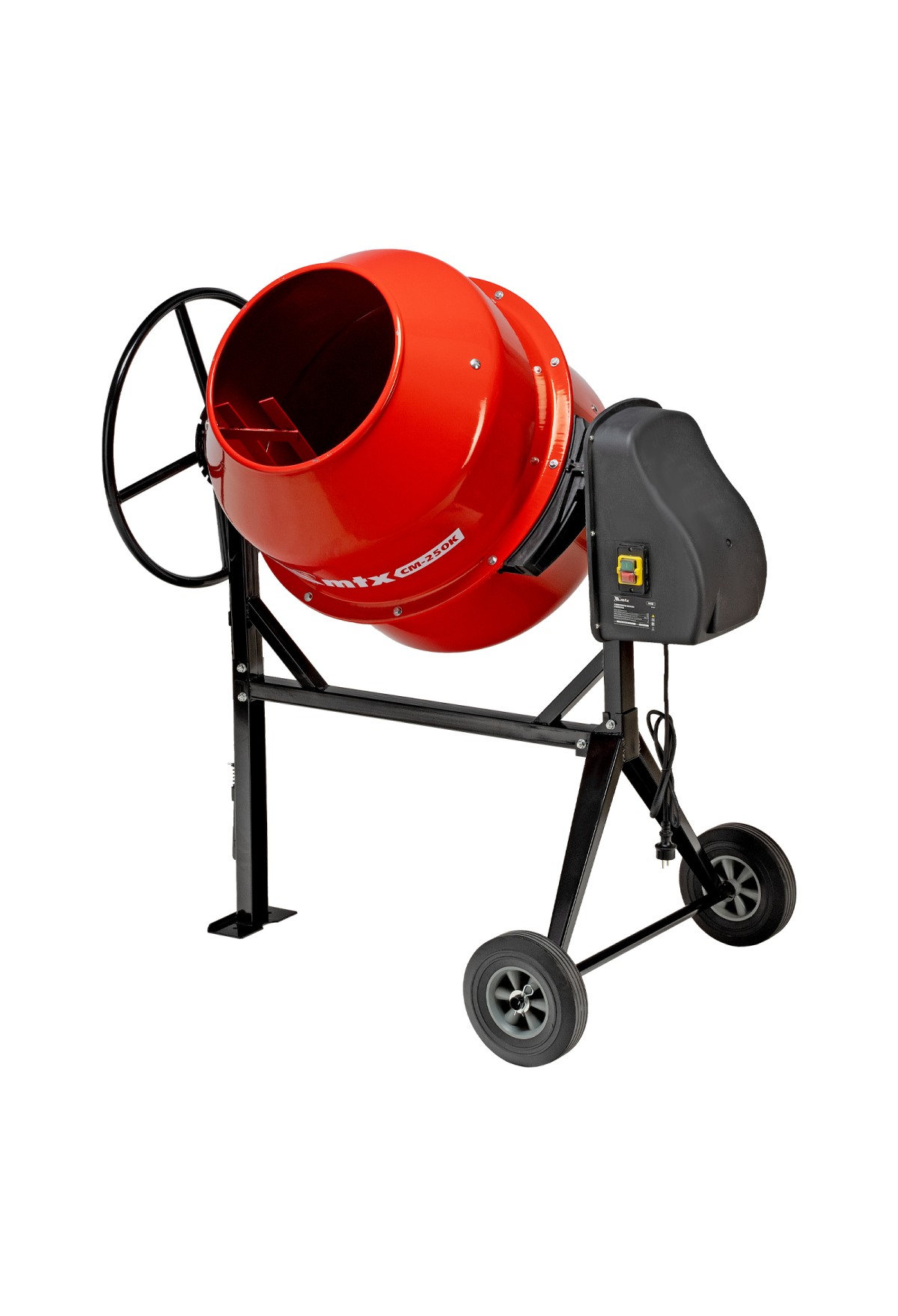 Бетоносмеситель MTX CM-250K 95487 мощностью 850 Вт, с баком на 250 л, предназначен для приготовления бетонных смесей и штукатурных растворов. Оптимальное соотношение мощности двигателя и объема бака обеспечивает высокую скорость перемешивания и надлежащее качество полученной смеси. Максимальный объем готового раствора составляет 165 л. Бетоносмеситель будет полезен на строительной площадке.