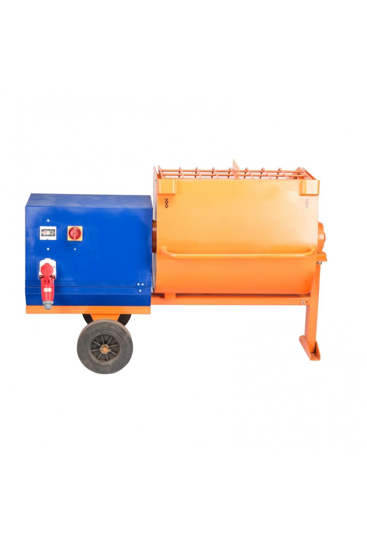 - Продуманная конструкция — двигатель отделен от блока смесителя, что позволяет минимизировать воздействие вибраций на основные элементы и продлить срок службы растворосмесителя.