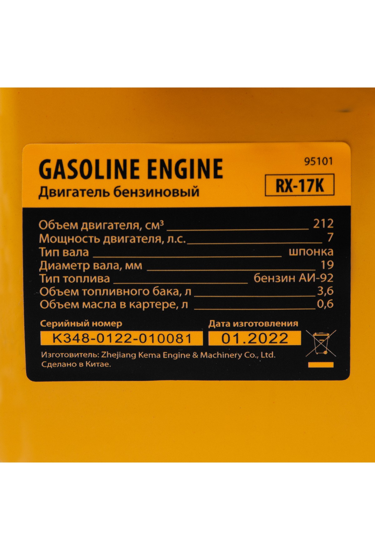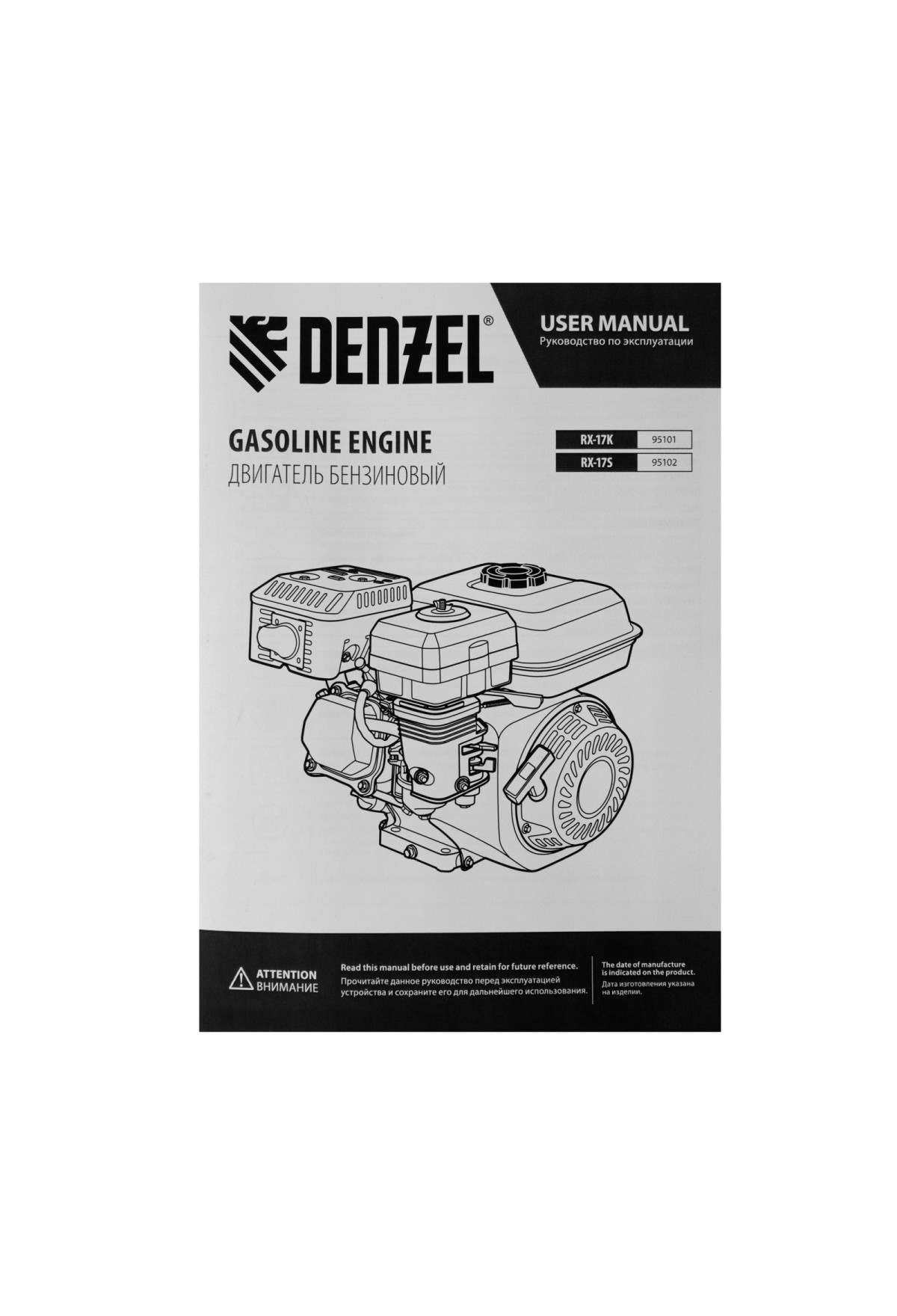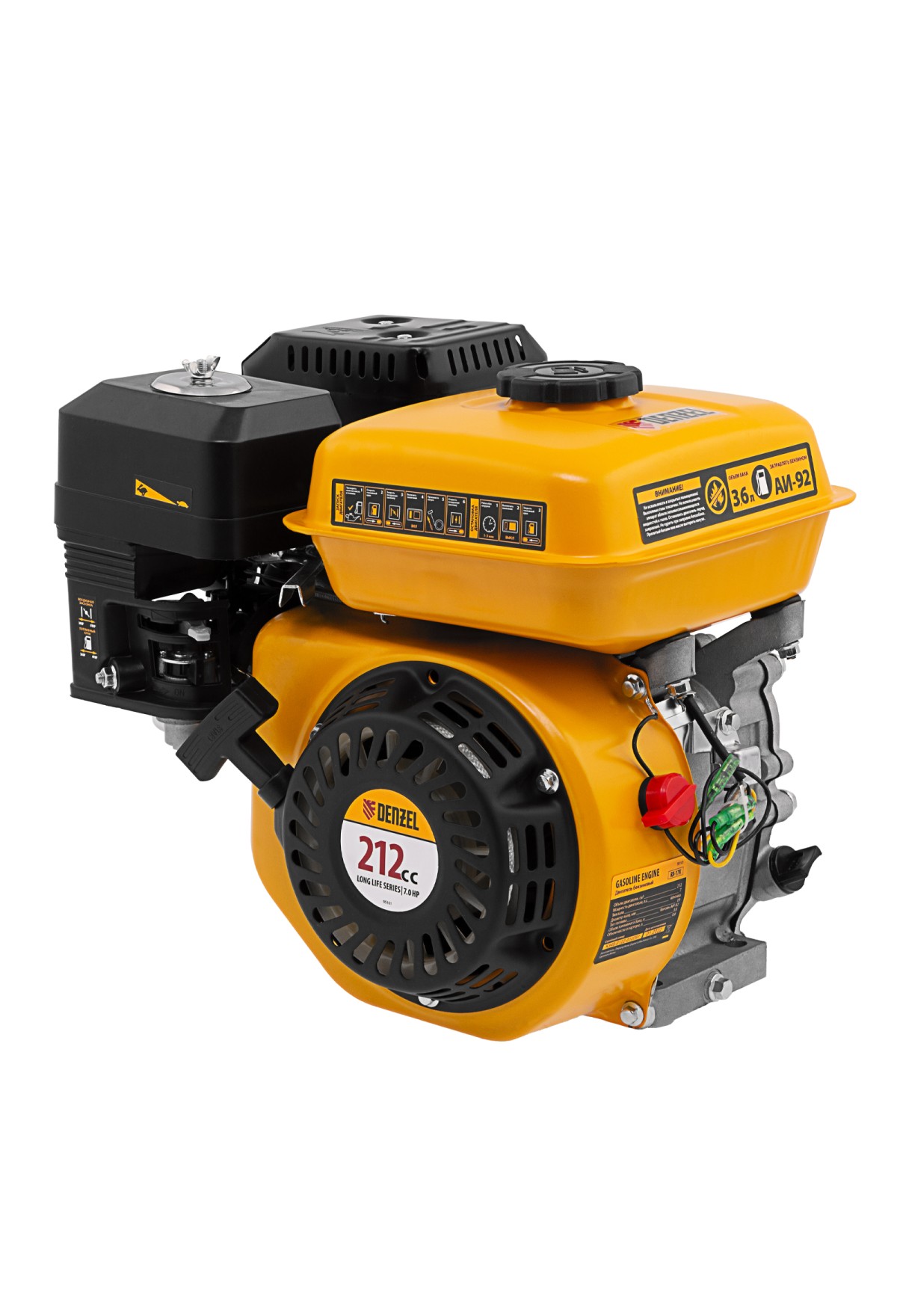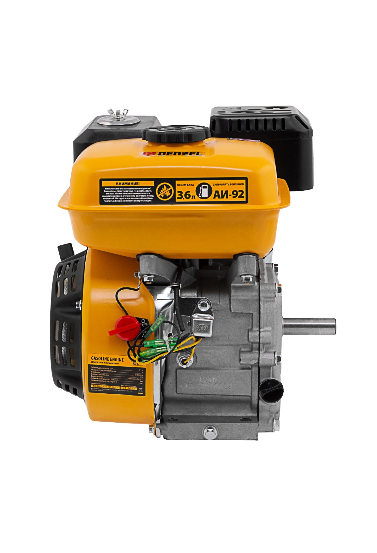 Технические характеристики Двигатель бензиновый RX-17K, 7 л.с., 212 см3, горизонтальный вал шпонка 19 мм Denzel