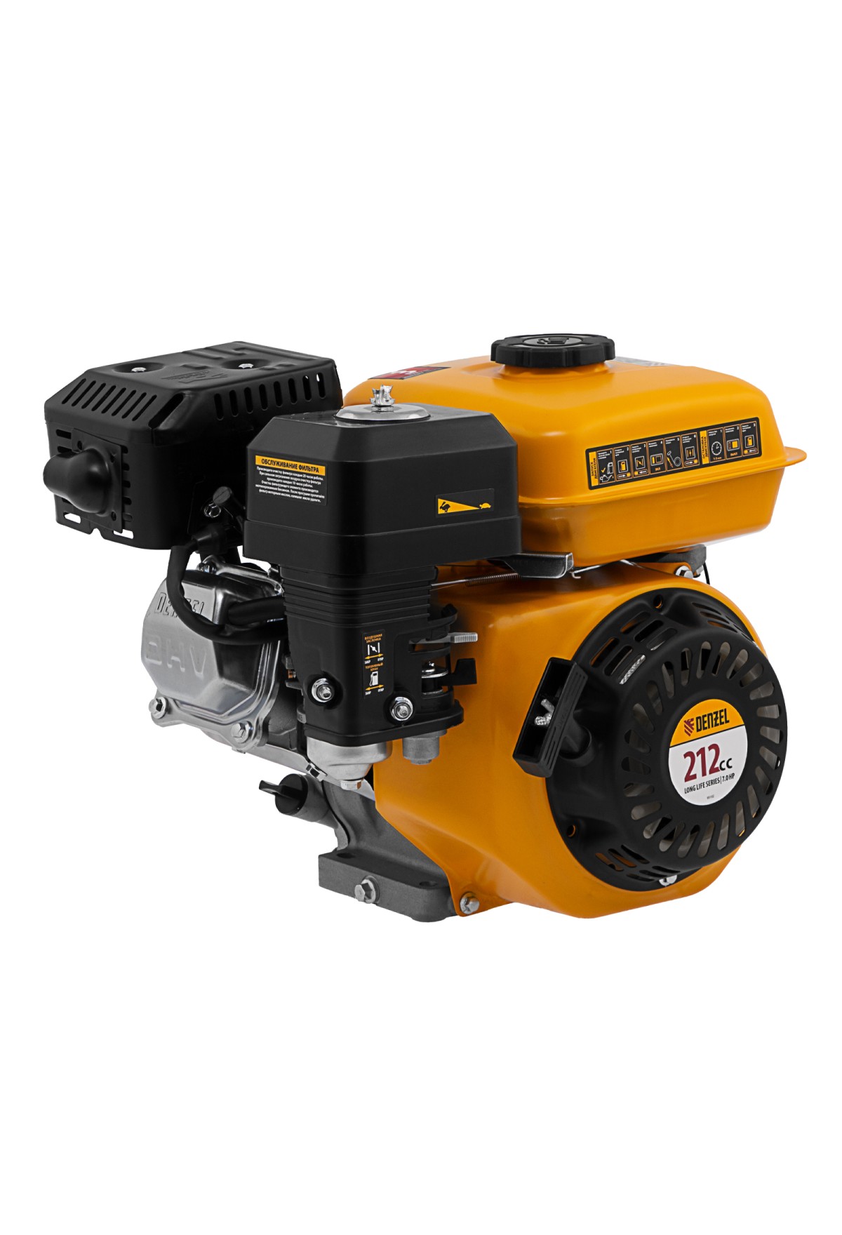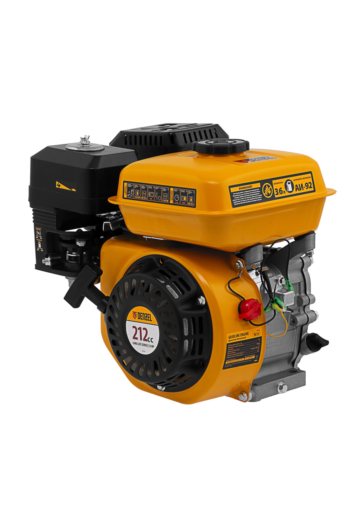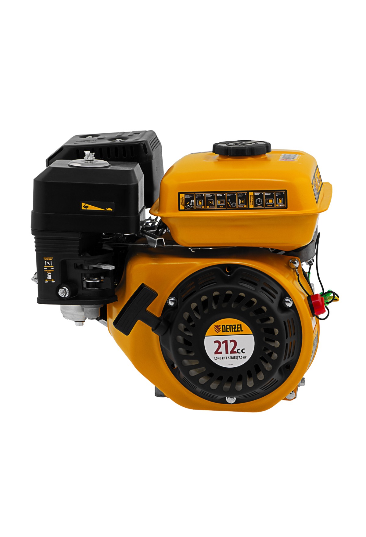 Четырехтактный бензиновый двигатель Denzel RX-17S 95102 мощностью 7 л. с. и объемом 212 см3, с типом горизонтального вала шлиц 25 мм, имеет ручной старт и воздушное охлаждение. Предназначен для использования в качестве привода садово-парковой и строительной техники (садовых измельчителей, мотопомп, бензиновых моек высокого давления и др.). Обеспечивает бесперебойное функционирование оборудования и эффективное выполнение сельскохозяйственных, строительных работ, а также решение прочих задач на загородном участке.
