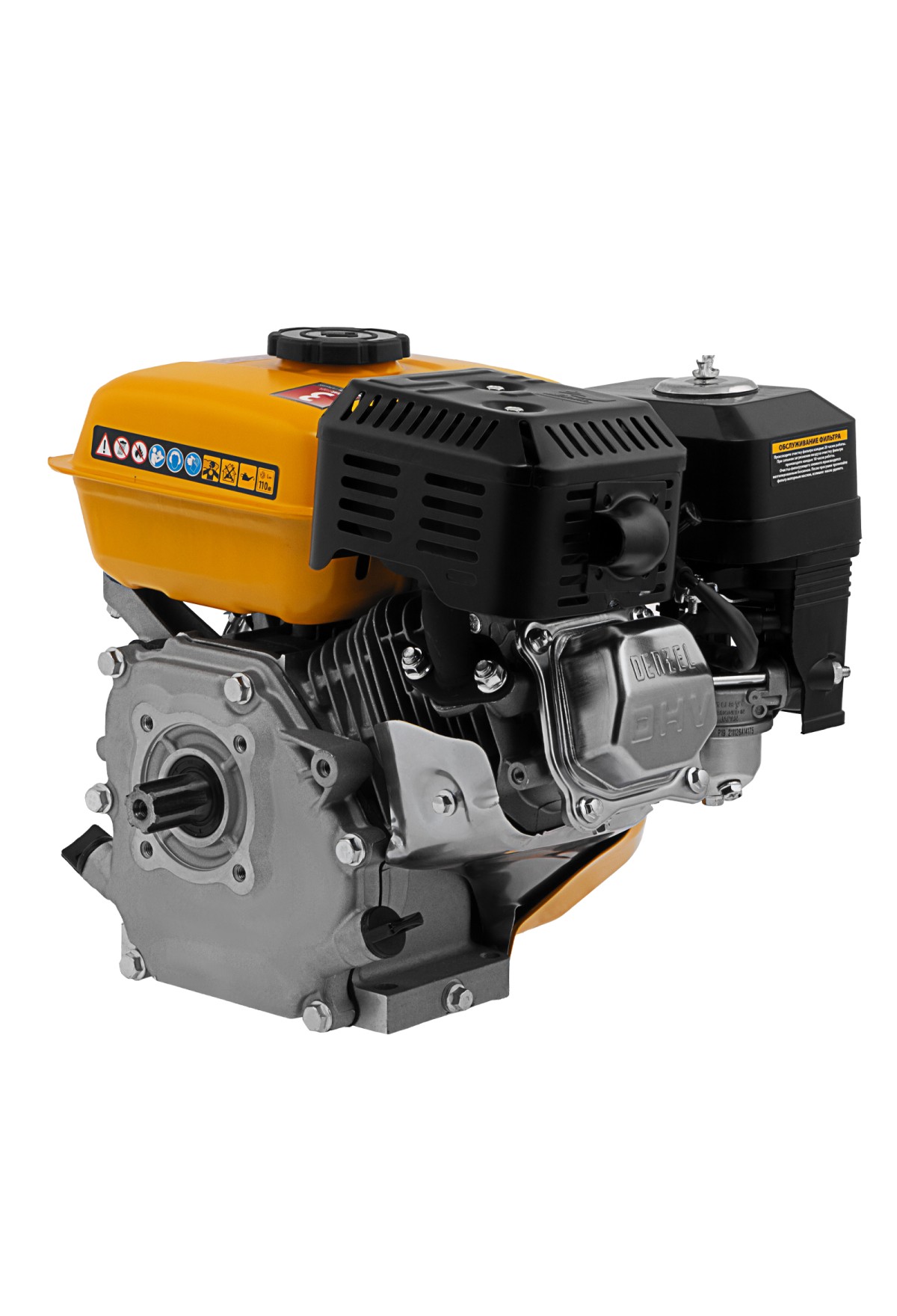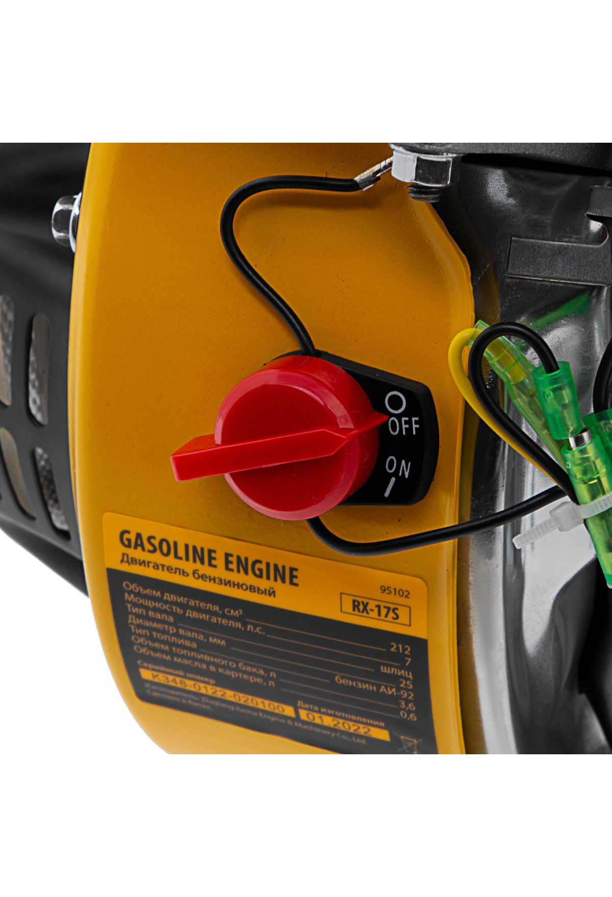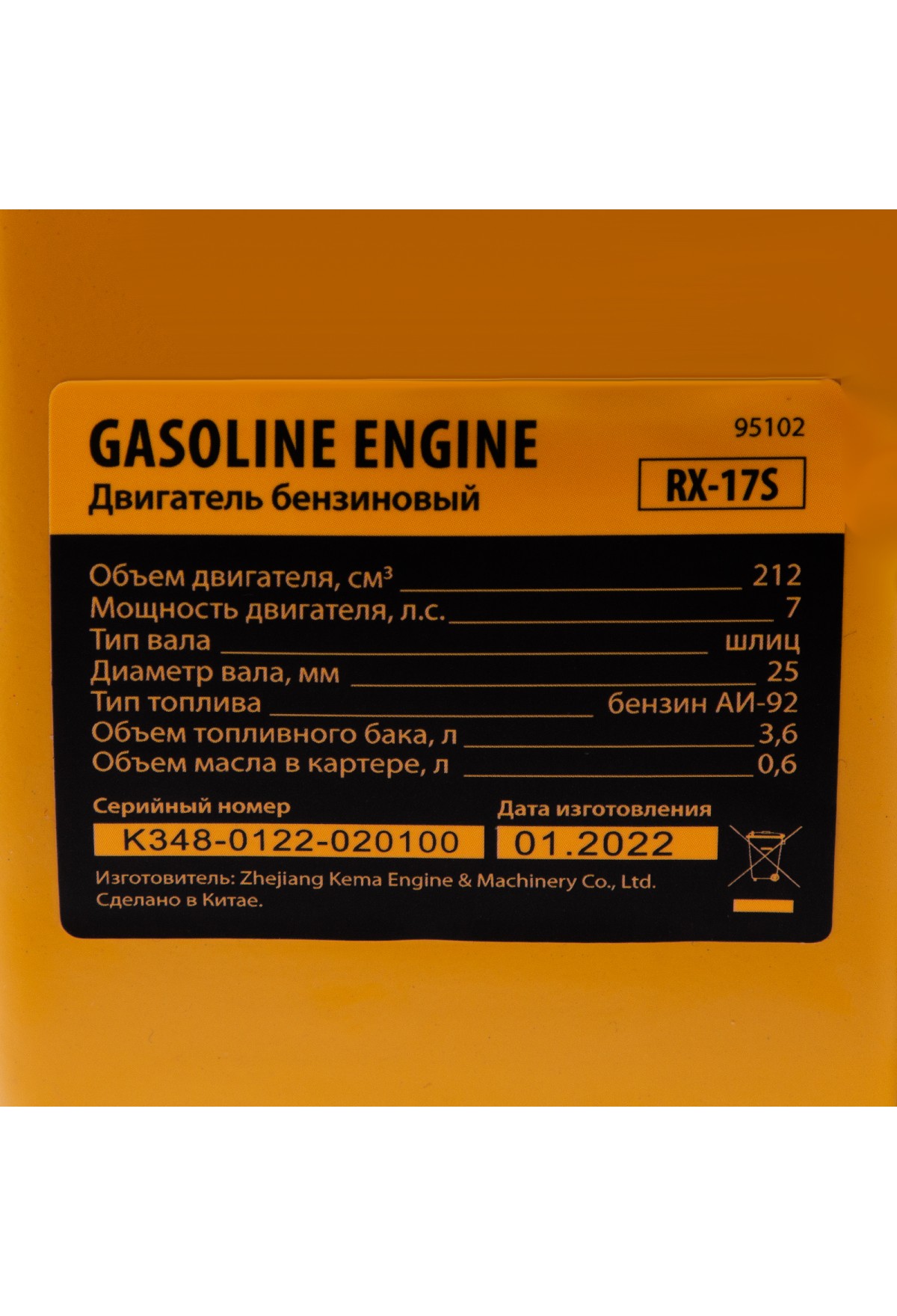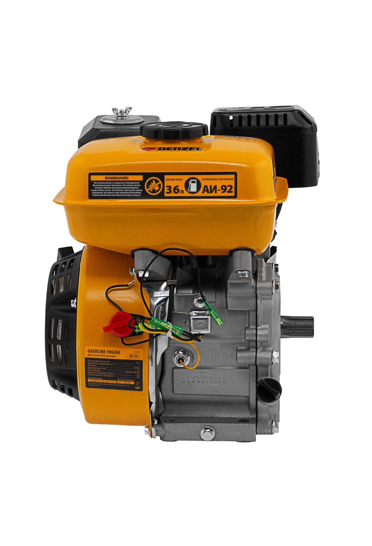 Четырехтактный бензиновый двигатель Denzel RX-17S 95102 мощностью 7 л. с. и объемом 212 см3, с типом горизонтального вала шлиц 25 мм, имеет ручной старт и воздушное охлаждение. Предназначен для использования в качестве привода садово-парковой и строительной техники (садовых измельчителей, мотопомп, бензиновых моек высокого давления и др.). Обеспечивает бесперебойное функционирование оборудования и эффективное выполнение сельскохозяйственных, строительных работ, а также решение прочих задач на загородном участке.