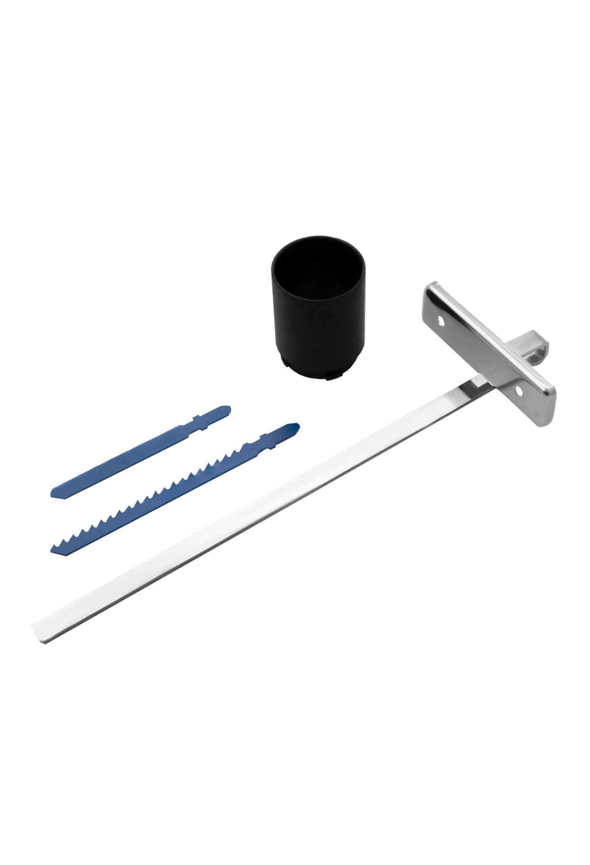 - Полная комплектация — лобзик поставляется с направляющей, пилками по дереву и металлу, шестигранным ключом, адаптером для подключения пылесоса и запасными угольными щетками.