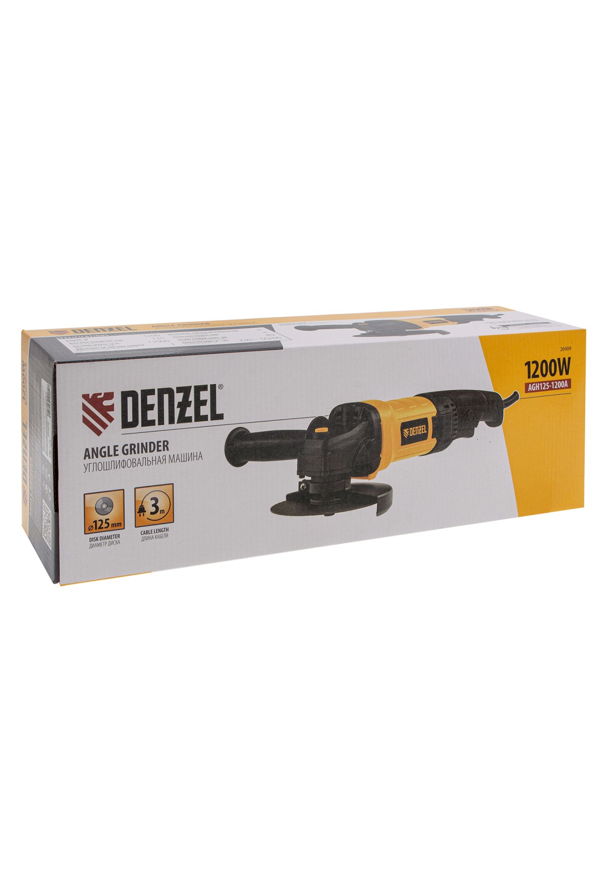 Технические характеристики Машина шлифовальная угловая AGH125-1200A, 1200 Вт, 125 мм, 11000 об/мин Denzel