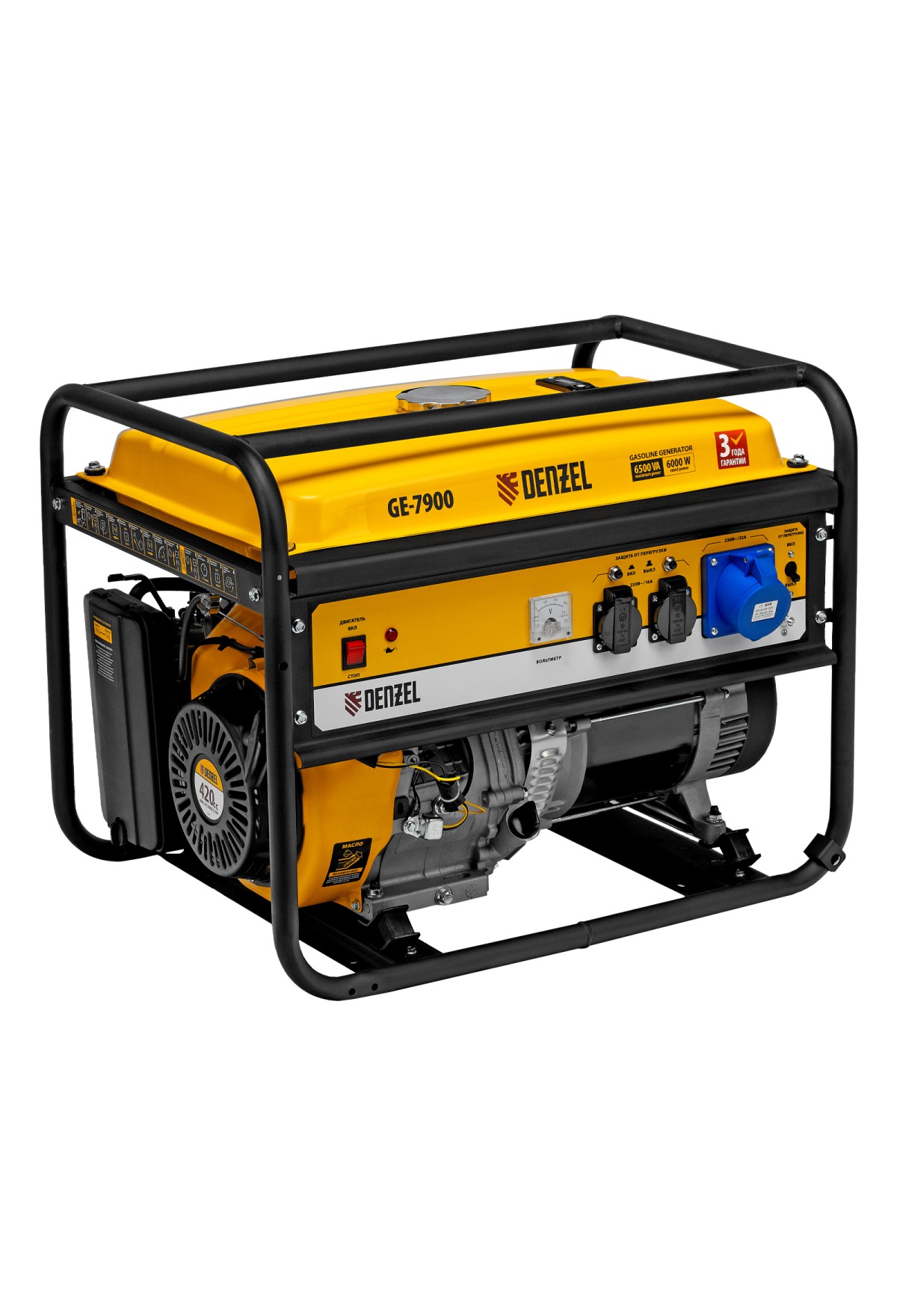 Генератор Denzel GE 7900 94638, 220 В / 50 Гц, мощностью 6,5 кВт, с ручным стартом и объемом бака 25 л, выдерживает большие нагрузки и подходит для питания мощного оборудования на даче, строительной площадке, в торговой точке. Генератор оснащен 3 розетками, одна из которых силовая, что позволяет подключать промышленное оборудование. Полного бака хватает на 8,5 ч работы без дозаправки.