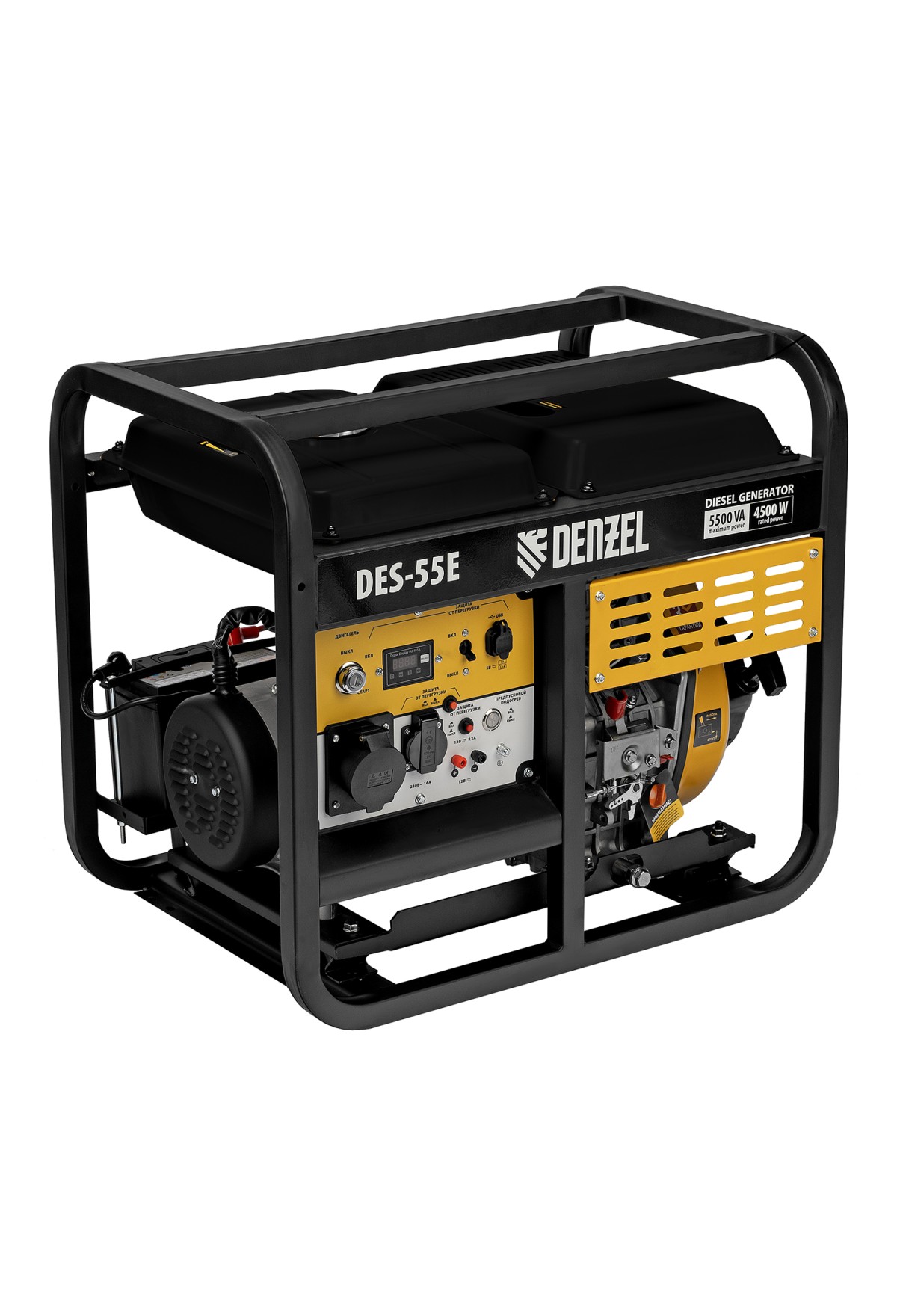 Генератор дизельный Denzel DES-55E 94414 с объемом топливного бака 11 л, с электростартером, имеет максимальную выходную мощность 5,5 кВт и поддерживает напряжение в сети 230 В. Используется для снабжения энергией потребителей однофазного тока (осветительных приборов, бытовой техники, электроинструмента) при отсутствии доступа к стационарному источнику питания. Для подключения электроприборов служат 2 розетки: 230 В/16 А и 230 В/32 А. Клеммы постоянного тока 12 В позволяют заряжать автомобильные аккумуляторы, а двойной выход USB 5 В предназначен для подключения мобильных устройств (планшетов, смартфонов и т. д.). Генератор пригодится в загородном доме.