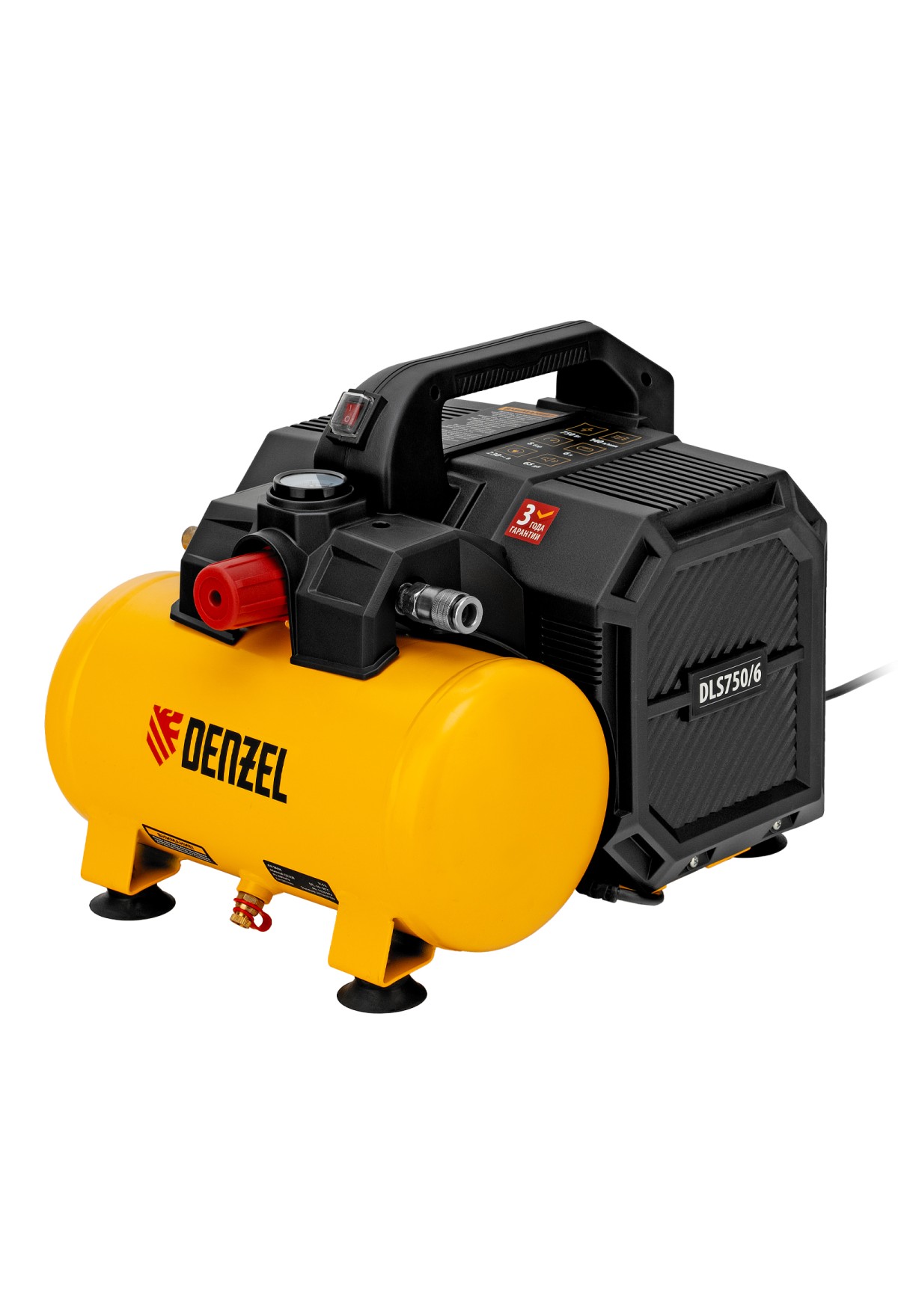 Компрессор безмасляный малошумный Denzel DLS750/6 58019 мощностью 750 Вт, с ресивером объемом 6 л, имеет производительность на входе 140 л/мин и предназначен для обеспечения пневмоинструмента сжатым воздухом. Оптимален для работы с краскораспылителем и продувочным пистолетом, т.к. воздух на выходе не содержит частиц масла. Рабочий узел закрыт сплошным кожухом, благодаря чему уровень шума во время работы не превышает 65 дБ. Компрессор можно использовать в жилом помещении и на дачном участке.