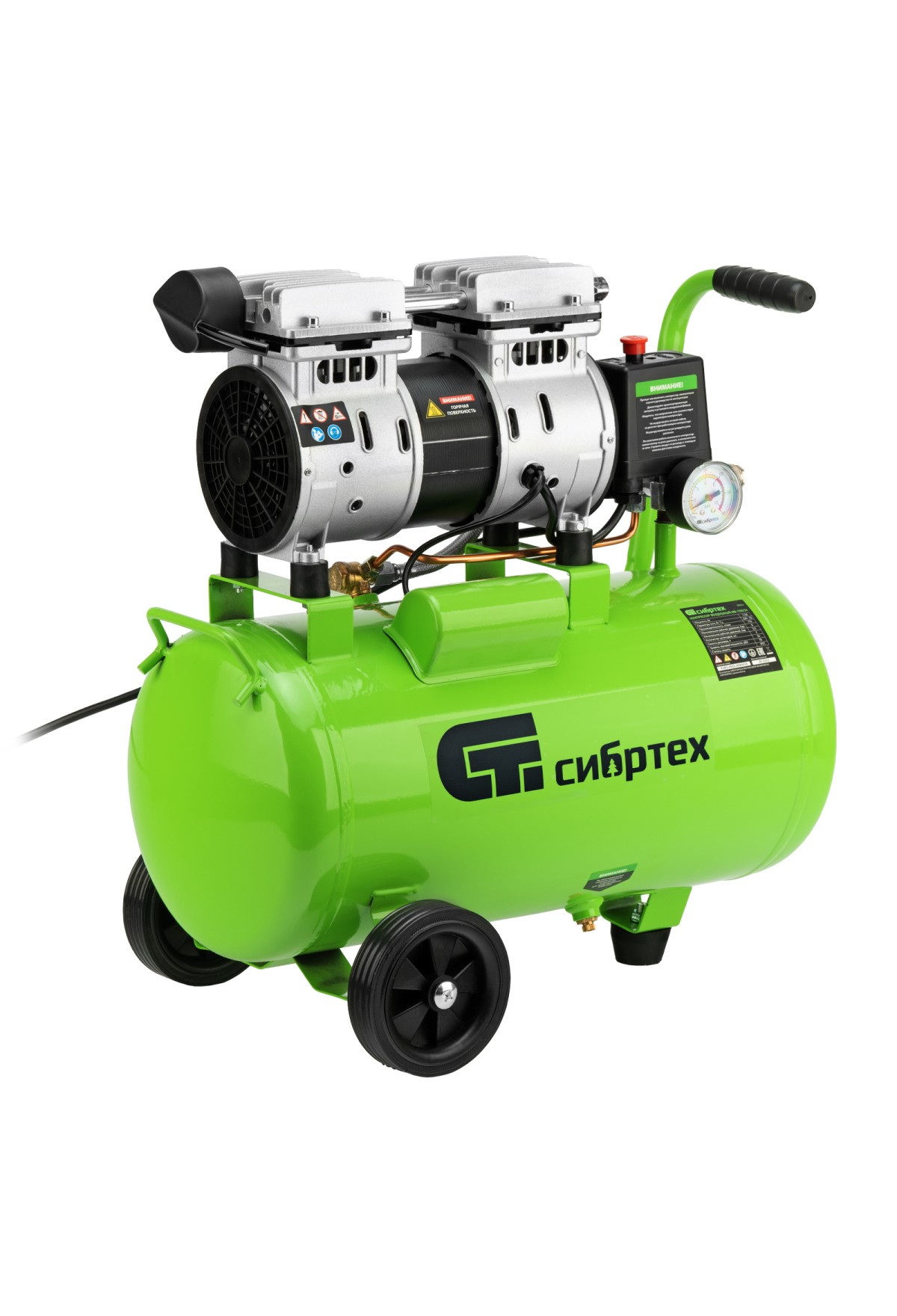 Безмасляный малошумный компрессор Сибртех МБ 1100/24 58006 мощностью 1100 Вт и объемом ресивера 24 л имеет производительность на входе 170 л/мин и сжимает воздух под давлением до 8 бар. Используется для обеспечения функционирования пневмоинструмента, например, краскораспылителя или пневматического шуруповерта. Для работы устройства не требуется масло, поэтому воздух на выходе не содержит его частиц. Компрессор оптимален для проведения покрасочных работ и продувки электронных компонентов.,Одна из ключевых особенностей компрессора — низкий уровень шума (не превышает 70 дБ), позволяющий использовать устройство в жилом помещении без дискомфорта для людей.