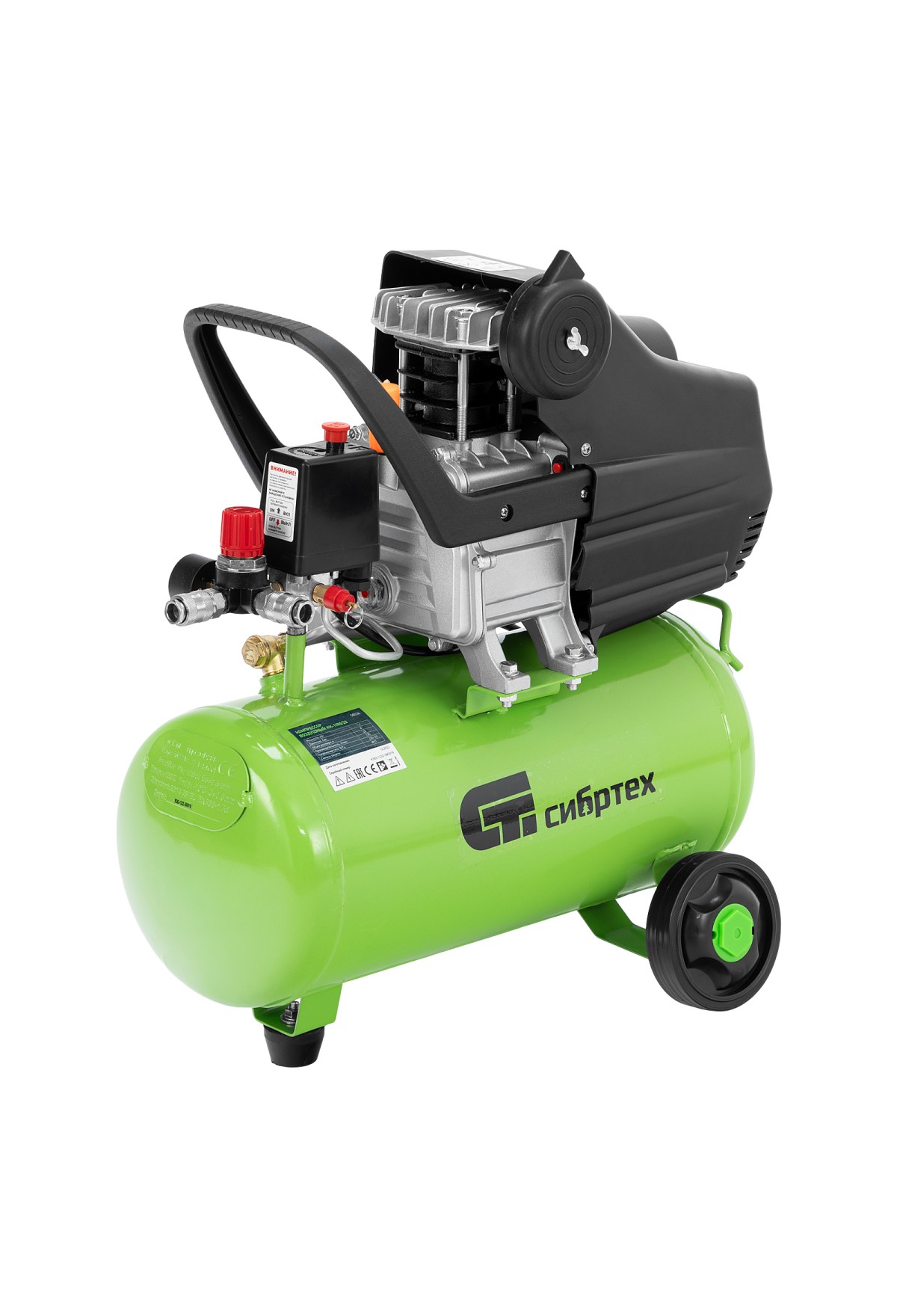 - Легкая транспортировка: удобные колеса помогают перемещать компрессор по рабочей площадке, не поднимая его