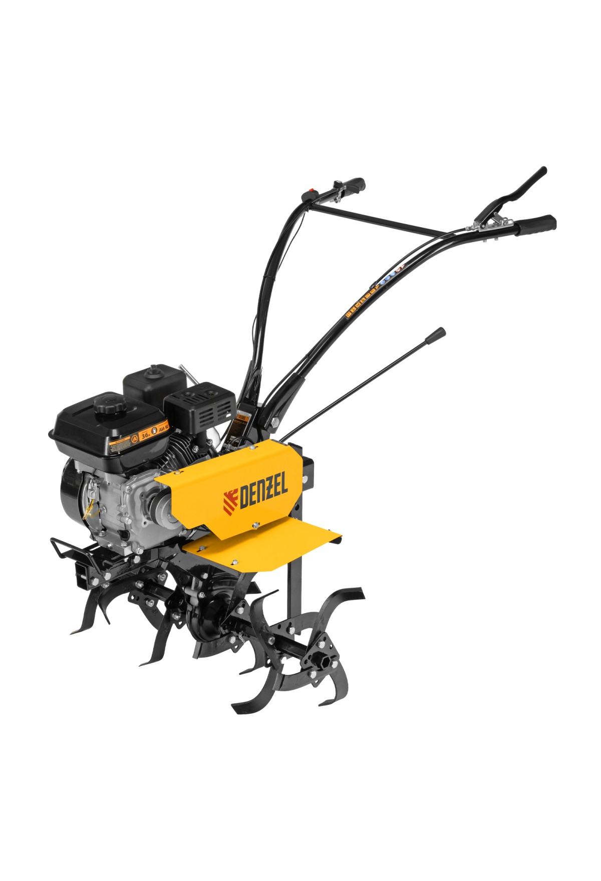 Мотоблок Denzel DPT-170 56431 с двигателем объемом 212 см3 и мощностью 7 л.с., ременным сцеплением, шкивом отбора мощности (ШОМ) и коробкой передач 2В/1Н используется для проведения различных сельскохозяйственных работ. Удобен для обработки участков большой площади: в комплект поставки входит 18 высокопрочных фрез, обеспечивающих ширину вспахивания 85 см и глубину 35 см.,Возможность установки различного навесного оборудования, в том числе активного, значительно расширяет возможности мотоблока и позволяет снизить расходы на приобретение сельскохозяйственной техники. Техника совместима со всеми моделями навесного оборудования, представленного в ассортименте Denzel (приобретается отдельно). Установив прицеп Denzel 59950, мотоблок можно использовать в качестве транспортного средства.