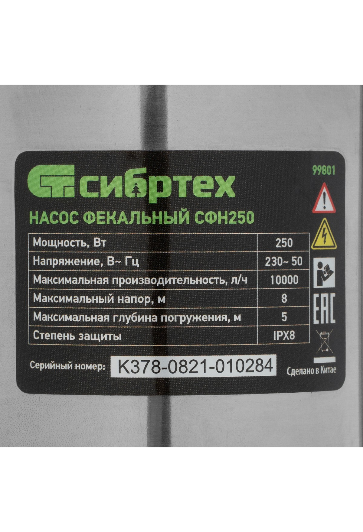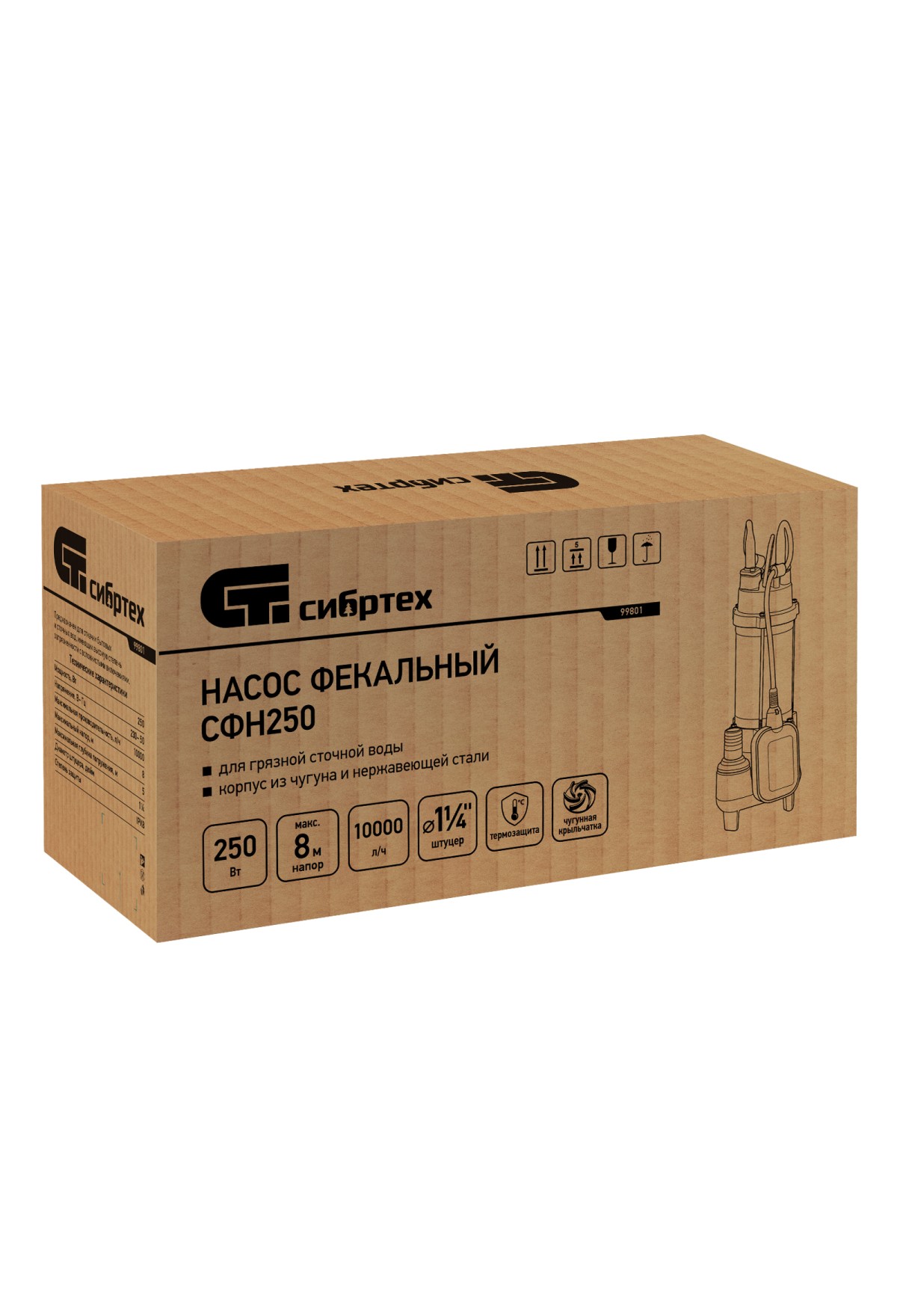 Фекальный насос Сибртех СФН250 99801 обеспечивает напор 8 м, имеет мощность 250 Вт и производительность до 10000 л/ч и применяется для откачки грязной воды из затопленных помещений, нечистот из выгребных ям и канализации. Также его можно использовать для организации принудительной канализационной системы или системы полива на даче. Диаметр штуцера для шланга составляет 1 1/4 дюйма. Насос подходит для работы с холодными стоками, при этом температура перекачиваемой жидкости не должна превышать 35 градусов. Благодаря чугунному импеллеру насос справляется с перекачкой воды, содержащей фракции диаметром до 15 мм.