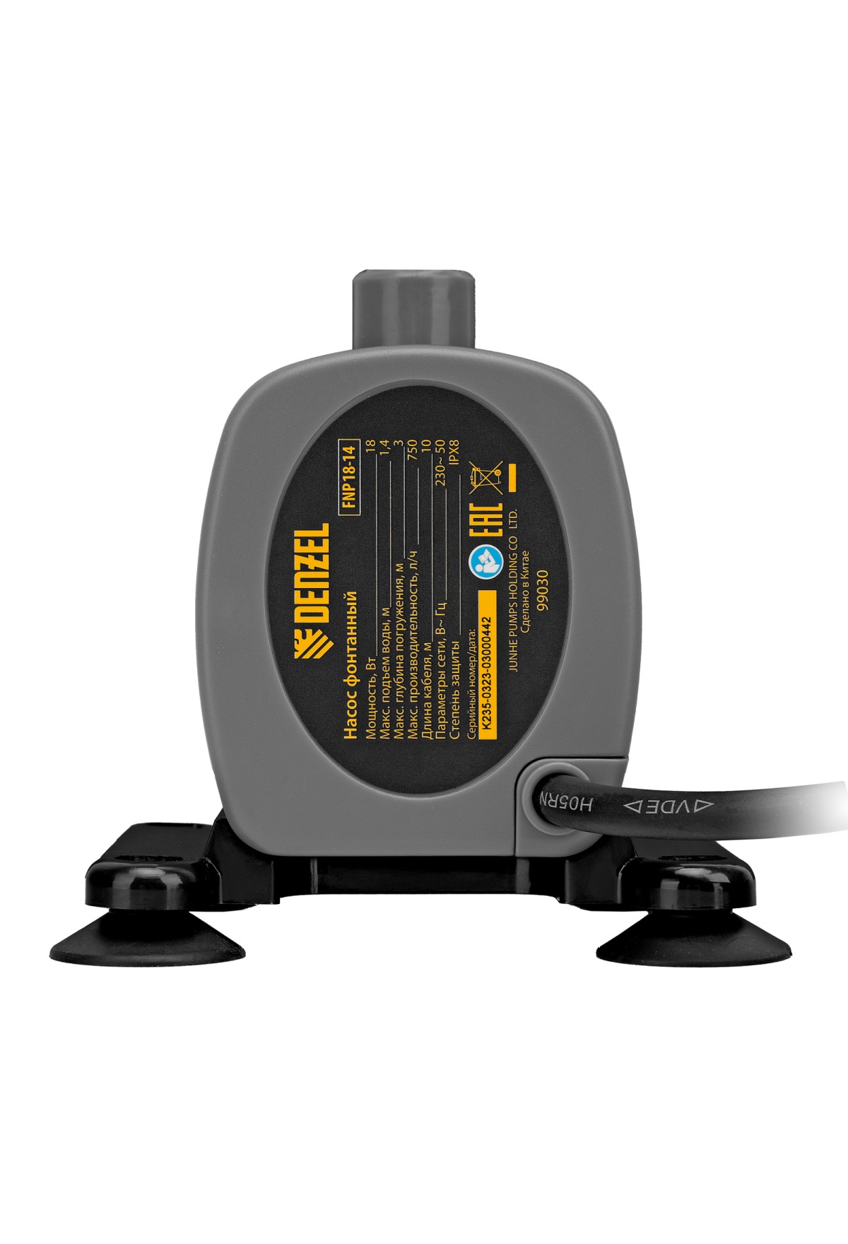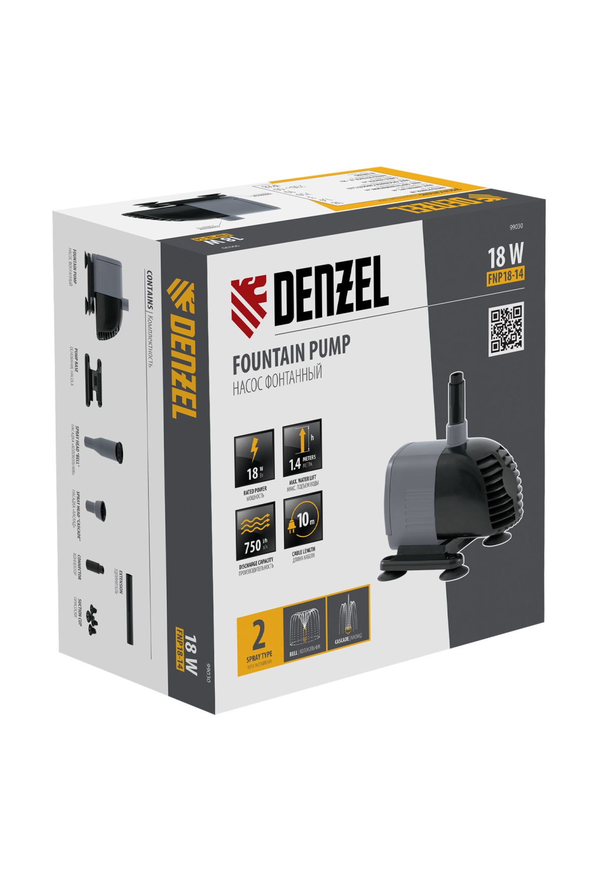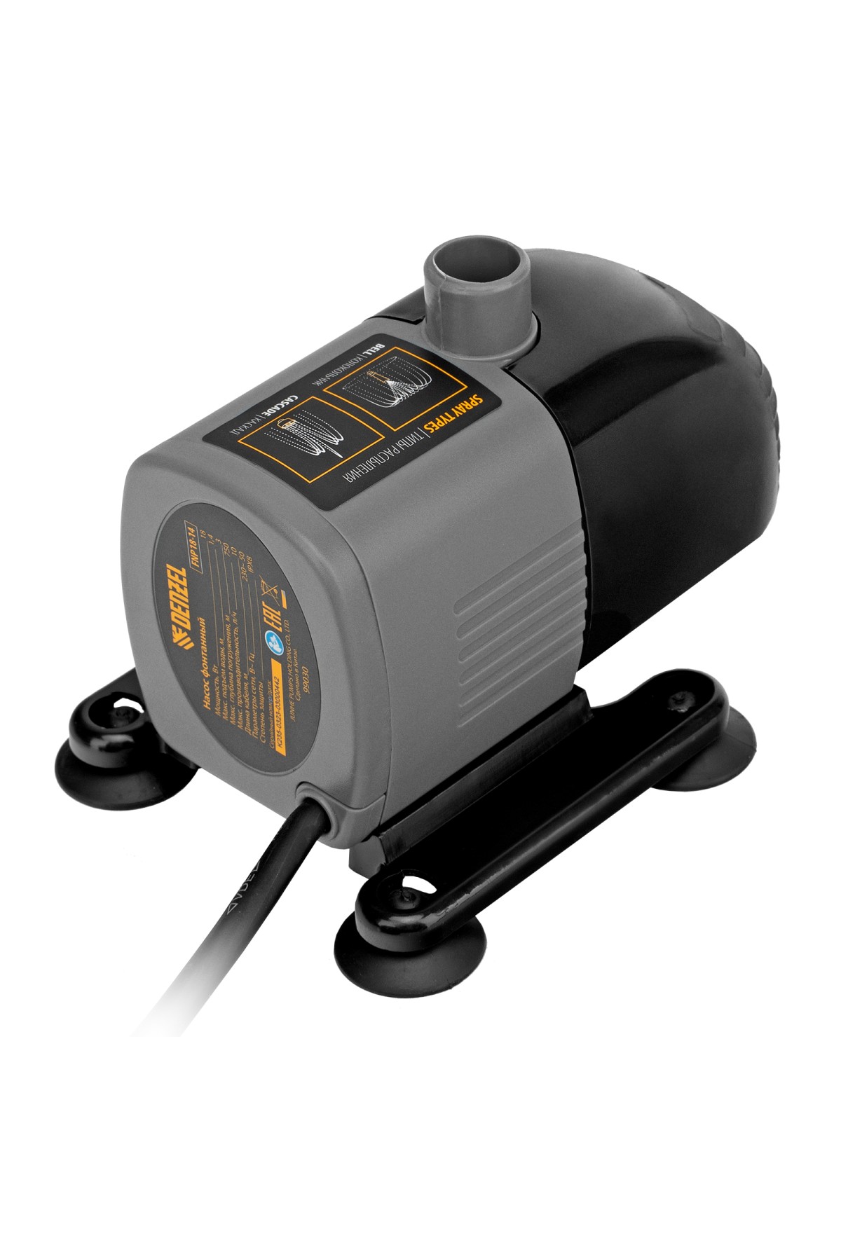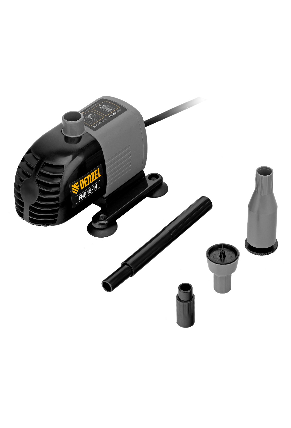 Фонтанный насос Denzel FNP18-14 99030 мощностью 18 Вт, с насадками колокольчик/каскад, перекачивает 750 л воды в час и обеспечивает максимальную высоту подъема 1,4 м. Позволяет создать декоративный фонтан, украсив водоем и оживив ландшафт дачного участка. Установив одну из двух входящих в комплект насадок, можно получить наиболее подходящий тип струи: в виде колокольчика или каскада.