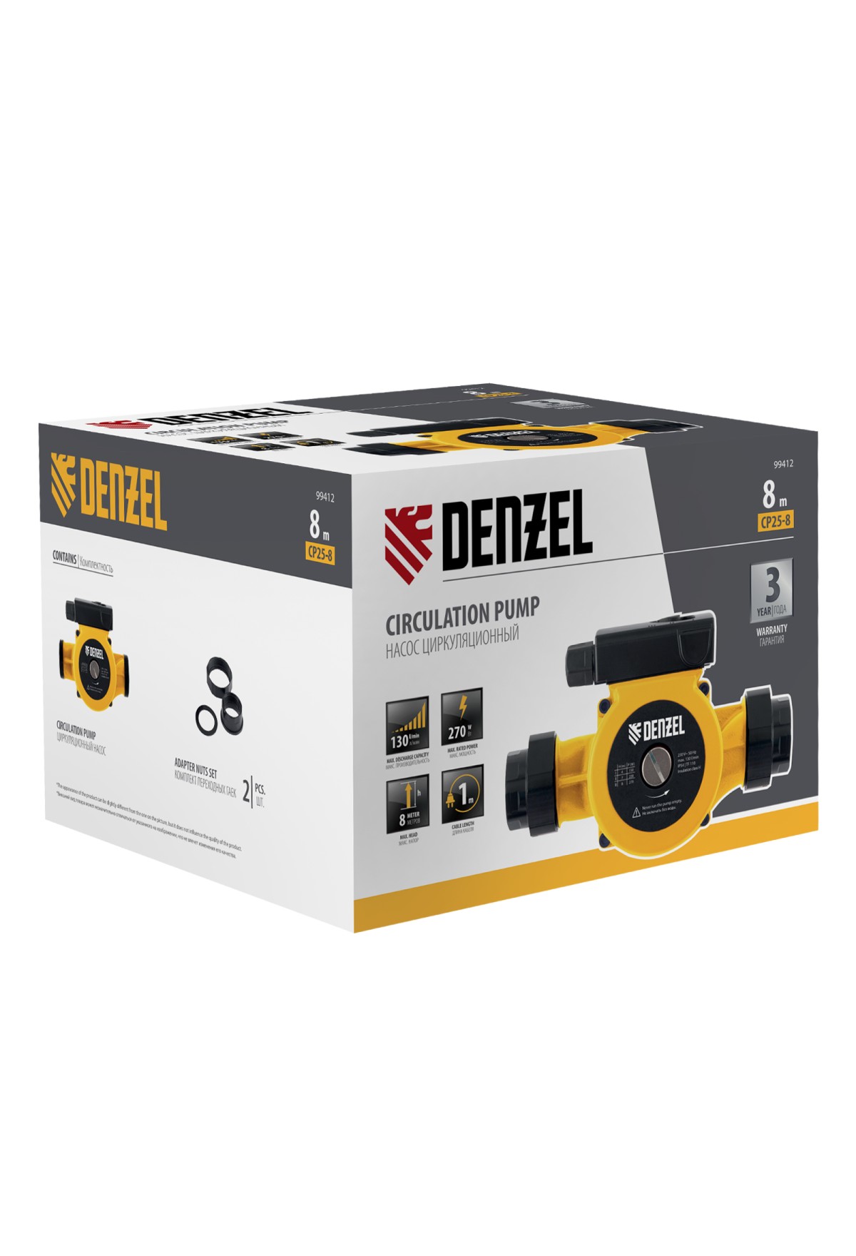 Циркуляционный насос Denzel CP25-8 99412 с кабелем длиной 1 м имеет монтажную длину 180 мм и обеспечивает напор до 8 м, максимальный объем перекачиваемой жидкости составляет 130 л/мин. Устройство обеспечивает непрерывное движение горячей воды температурой до 110 °C по трубопроводу. Насос позволит организовать эффективную систему теплоснабжения загородного дома.