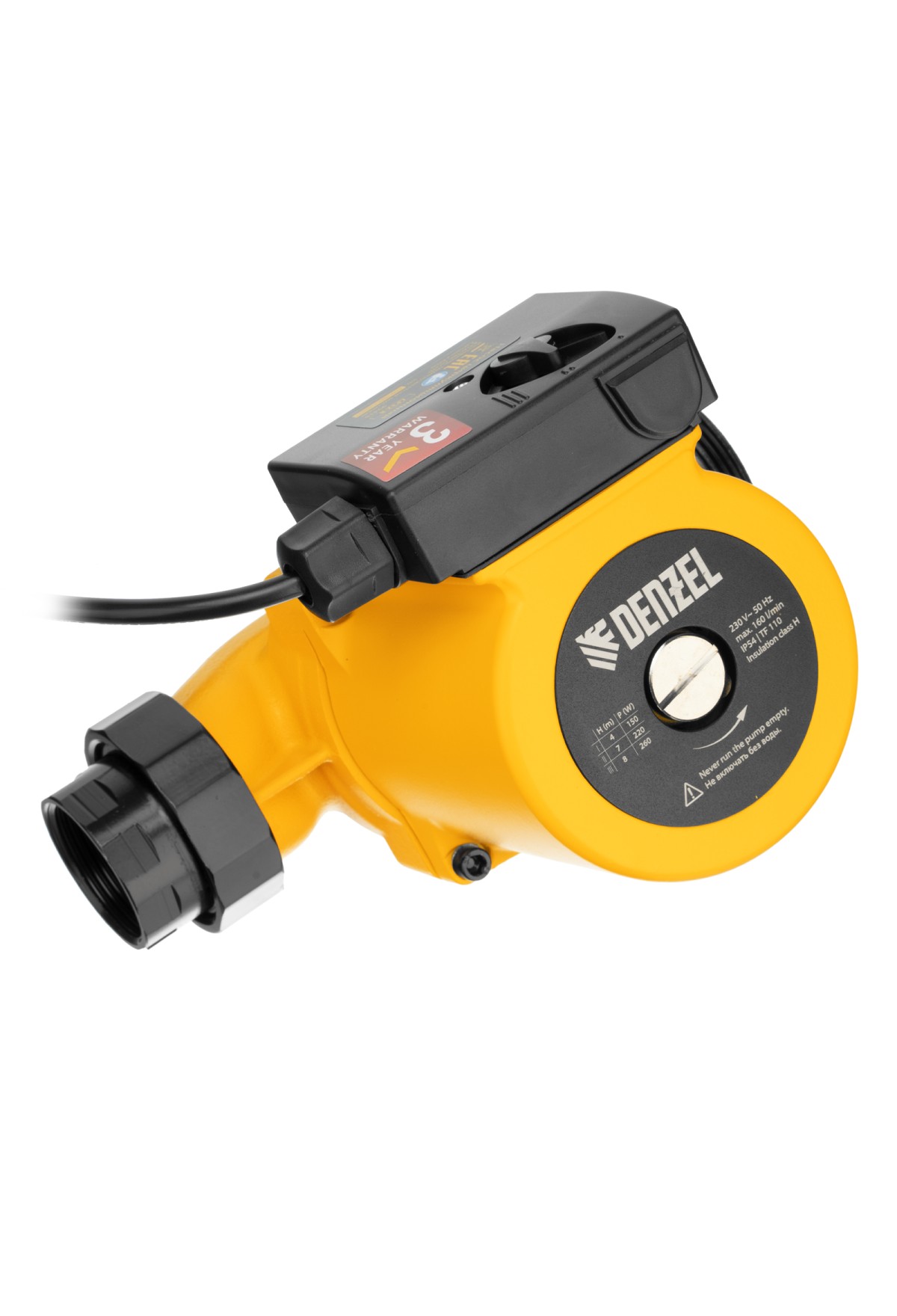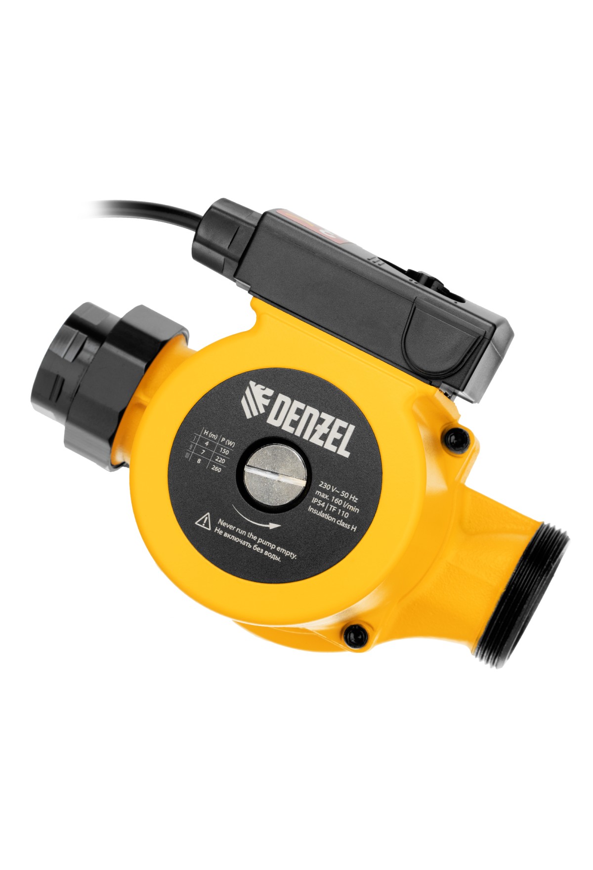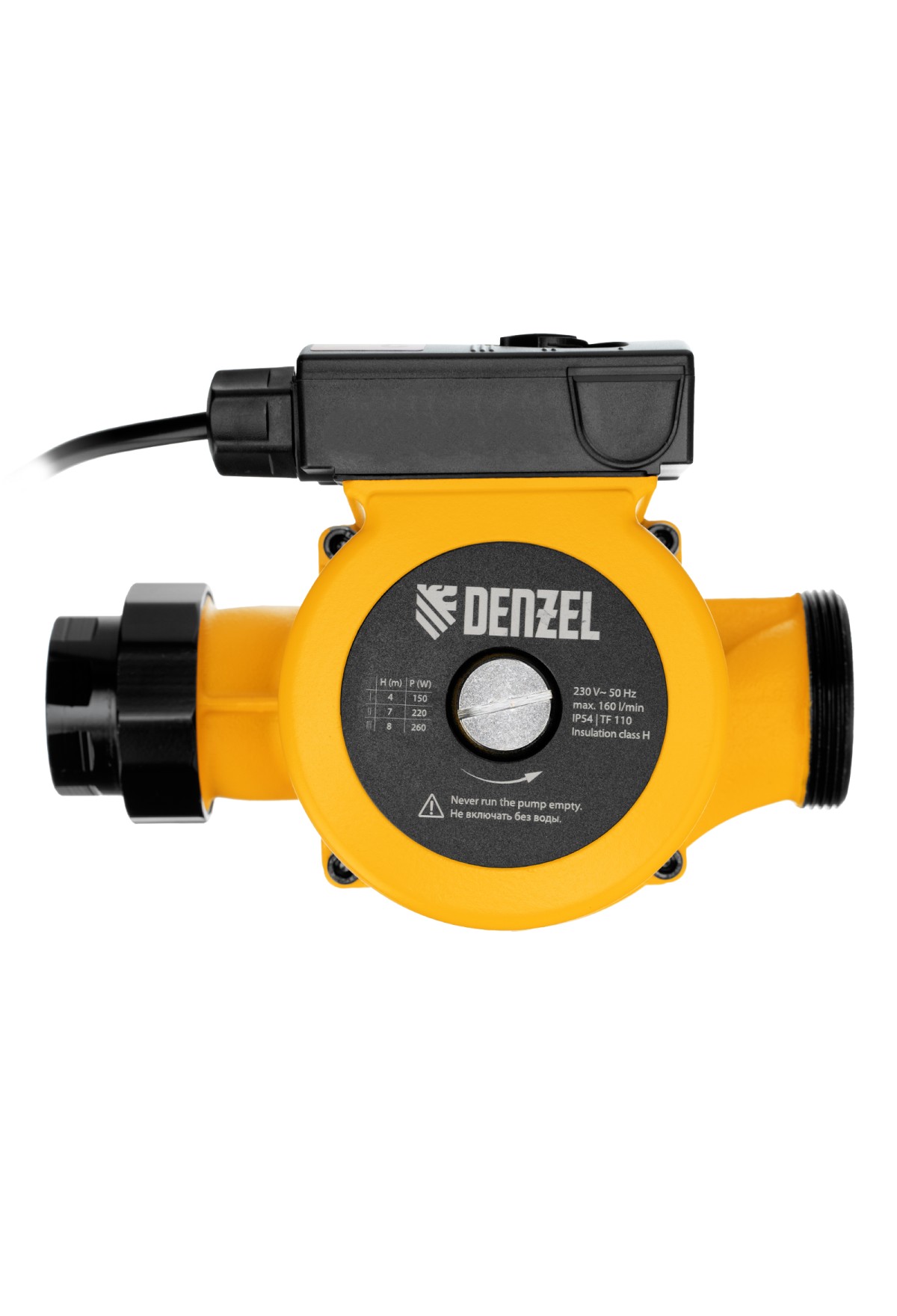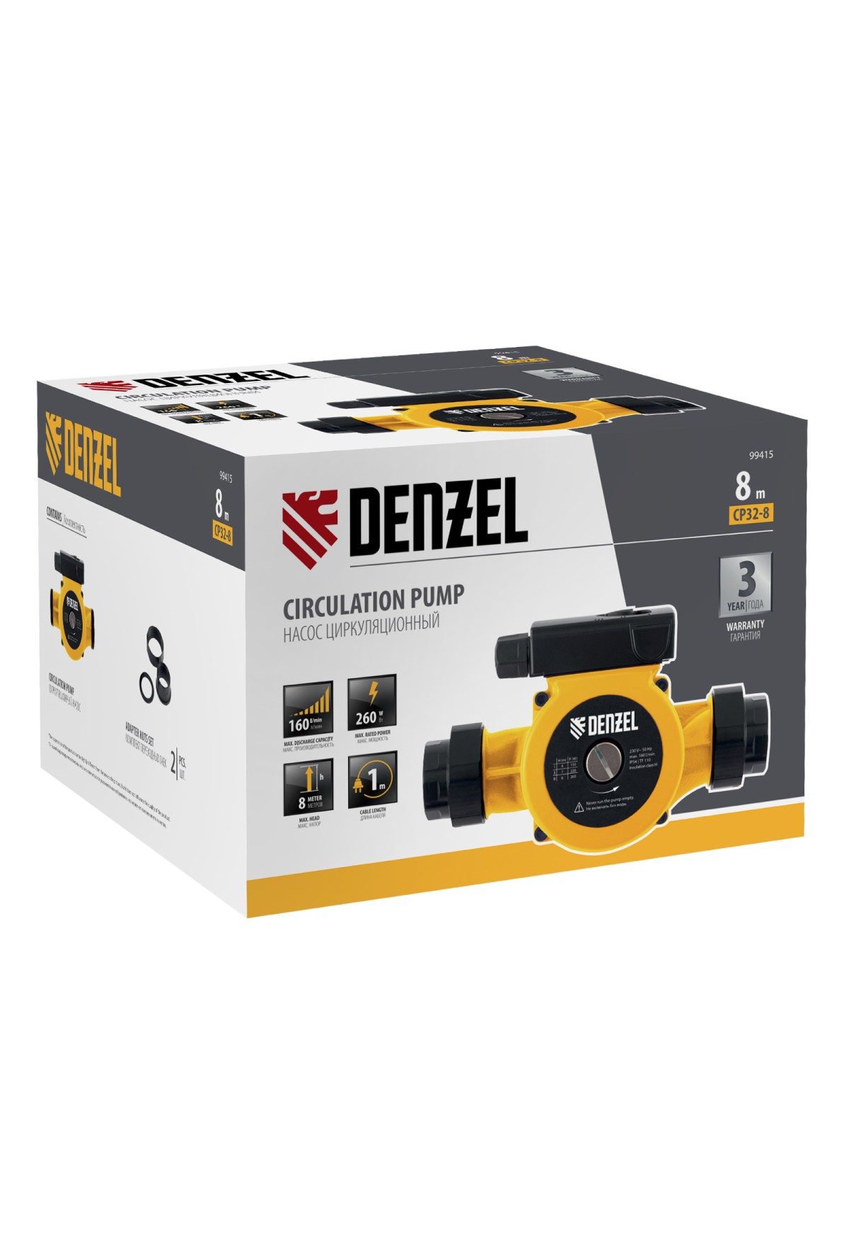 Технические характеристики Циркуляционный насос CP32-8, напор 8 м, 160 л/мин, 1 м кабель, монт. длина 180 мм Denzel