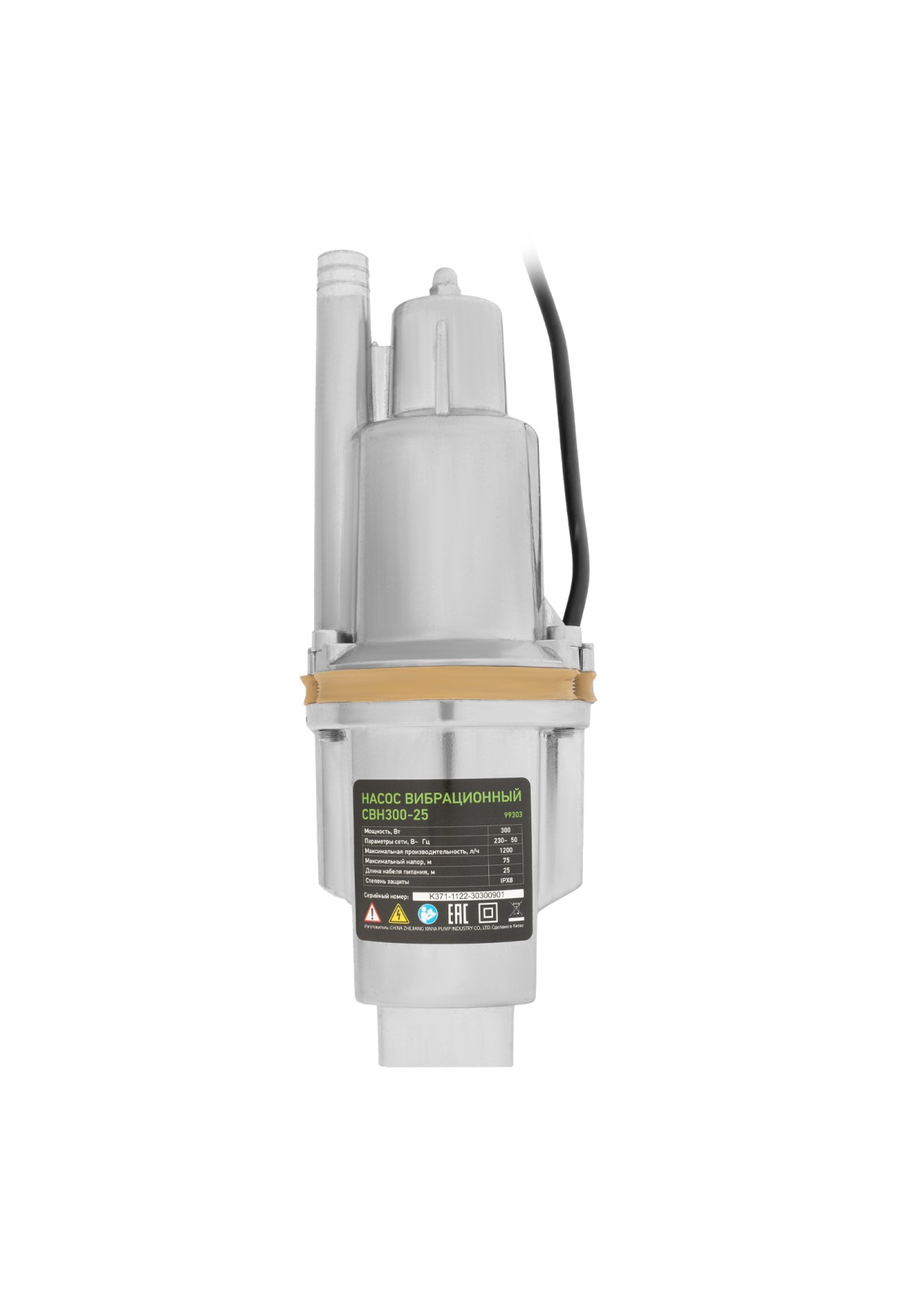 Вибрационный насос Сибртех СВН300-25 99303 с системой верхнего забора воды, мощностью 300 Вт, с кабелем длиной 25 м, обеспечивает напор 75 м и легко справляется с перекачкой больших объемов чистой воды со скоростью 1200 л/ч из резервуаров, колодцев, водоемов и затопленных помещений. Используется для организации системы полива и водоснабжения на даче. Рабочие характеристики насоса позволяют подавать воду на верхние этажи загородного дома без потери давления.