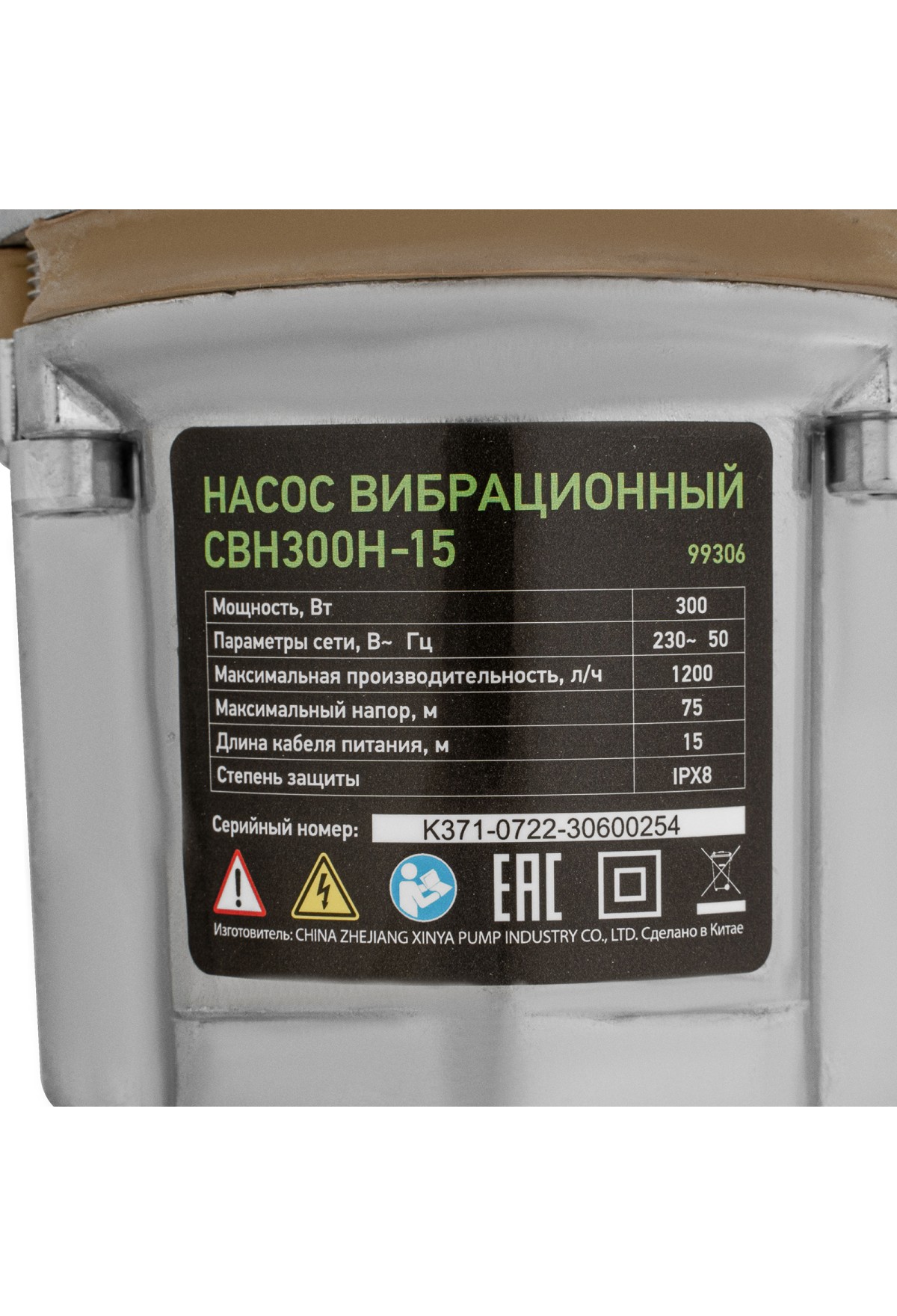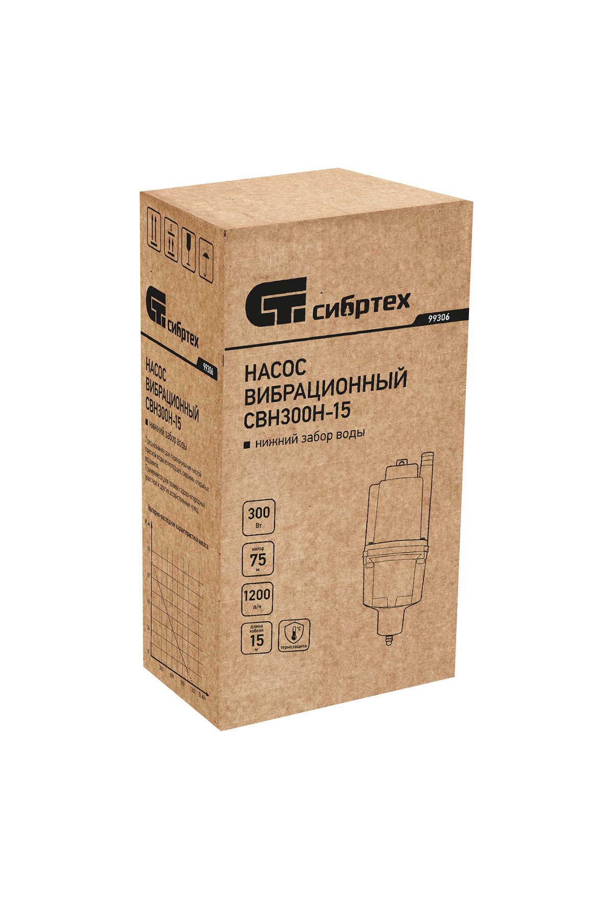 Вибрационный насос Сибртех СВН300Н-15 99306 с кабелем длиной 15 м имеет мощность 300 Вт и производительность до 1200 л/ч, обеспечивает напор до 75 м и используется при откачке воды из резервуаров и скважин диаметром от 100 мм. С его помощью можно организовать систему орошения и водоснабжения на даче, а также осушить затопленное помещение. Благодаря увеличенной высоте подъема насос можно использовать в доме с несколькими этажами.