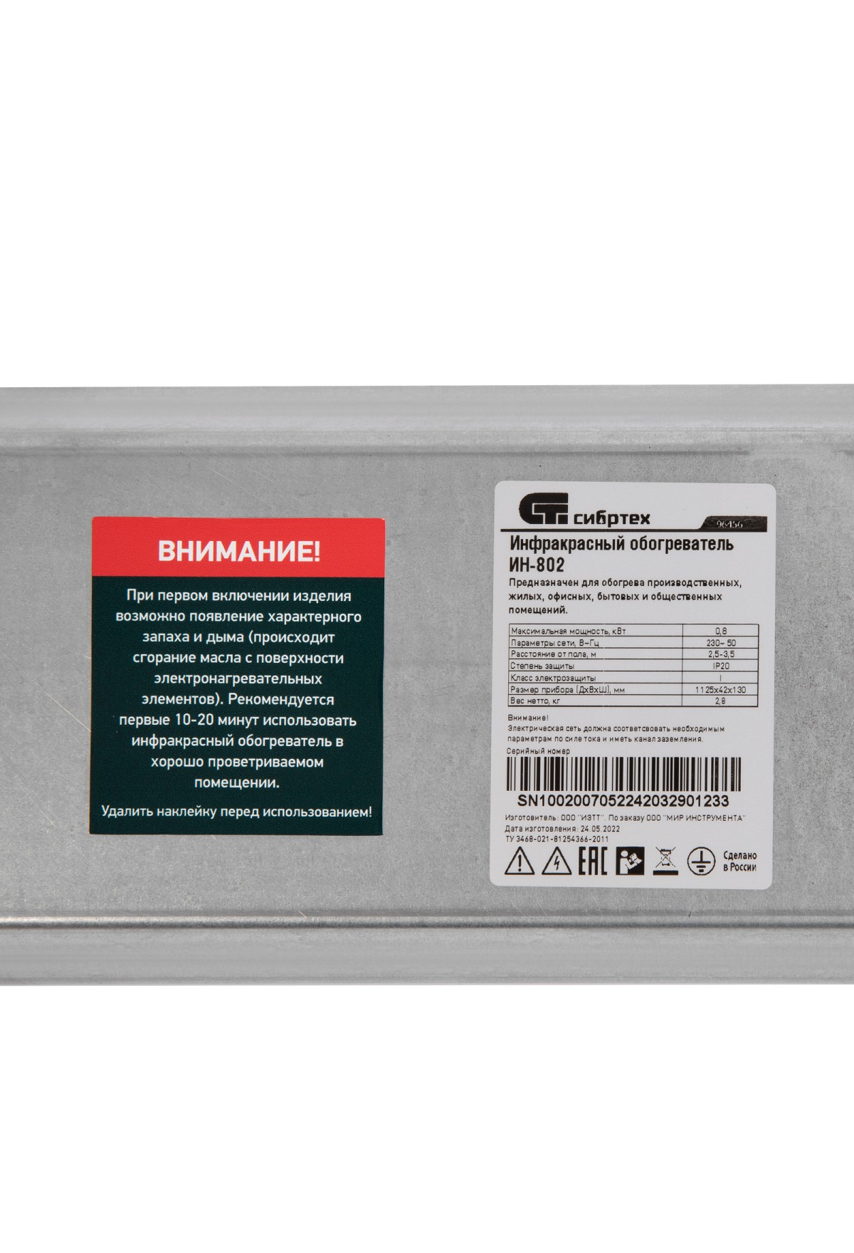 Инфракрасный обогреватель Сибртех ИН-802 96456 подключается к сети 230 В, потребляет мощность до 800 Вт и предназначен для создания комфортных температурных условий в помещении в холодное время года. Служит основным источником тепла на площади до 8 кв. м и дополнительным — в помещениях до 16 кв. м.,Одно из ключевых преимуществ обогревателя — энергоэффективность. Инфракрасное тепло передается сквозь воздух, не нагревая его, а нагревая предметы, находящиеся на расстоянии. Примерно по такому принципу на Землю передается тепло от Солнца. Вы ощутите его сразу, не дожидаясь прогрева всего воздуха в помещении.