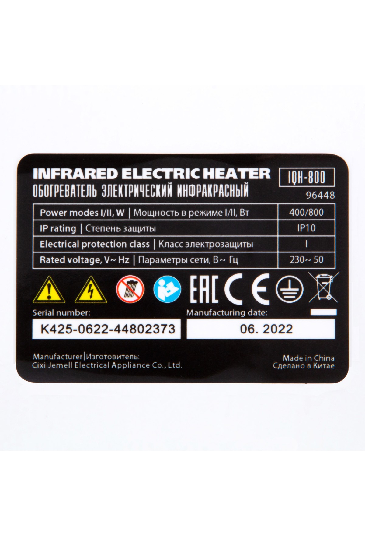 | Комплектация | Инфракрасный обогреватель - 1 штруководство по эксплуатации - 1 шт |