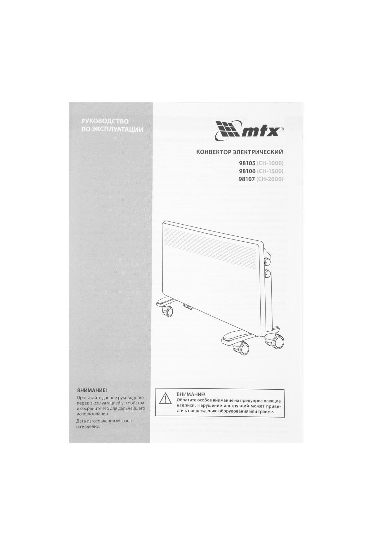 Конвектор электрический CH-1000, 1000 Вт, X-образный нагреватель, термостат, колеса MTX
