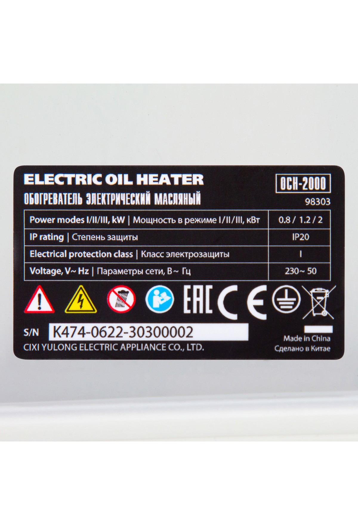 | Комплектация | Масляный обогреватель - 1 штКолесные опоры с креплением - 2 штРуководство по эксплуатации - 1 шт |