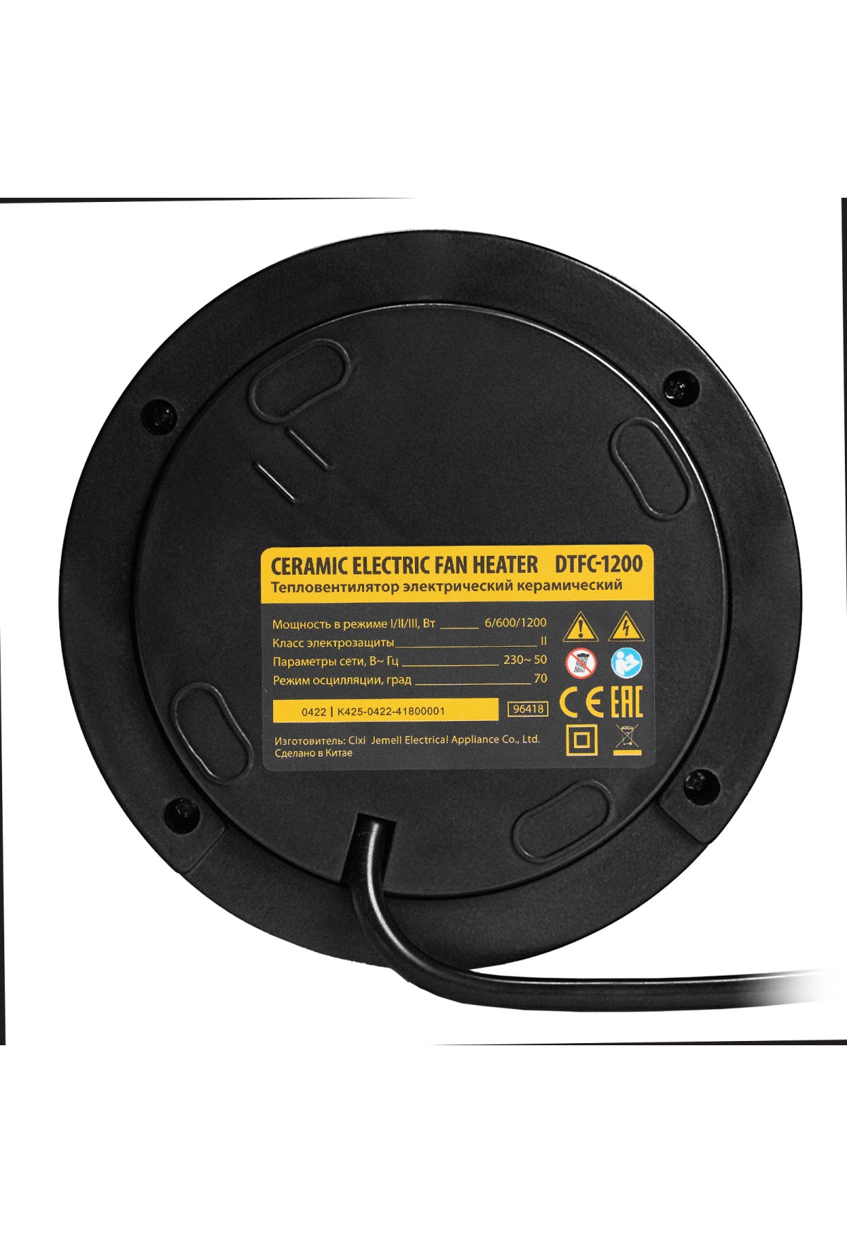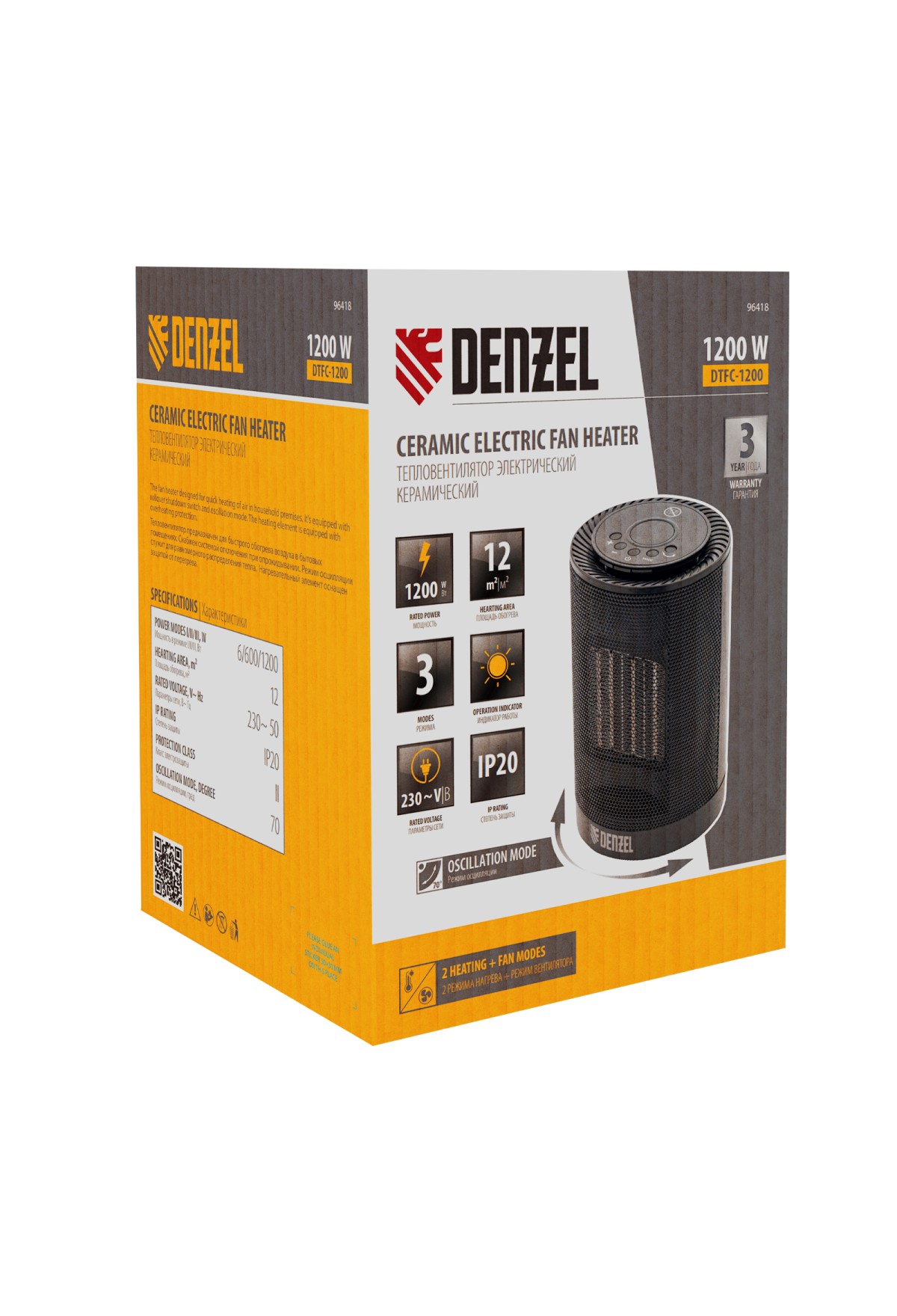 Электрический тепловентилятор Denzel DTFC-1200, 96418 с керамическим нагревательным элементом предназначен для обогрева и вентилирования бытовых помещений площадью до 12 м2. Он позволяет поддерживать комфортный климатический режим как в холодное, так и в теплое время года. Удобный и компактный тепловентилятор способен работать в 3 режимах: вентиляция, обогрев теплым и горячим воздухом. С помощью цифрового терморегулятора можно настроить необходимую температуру.