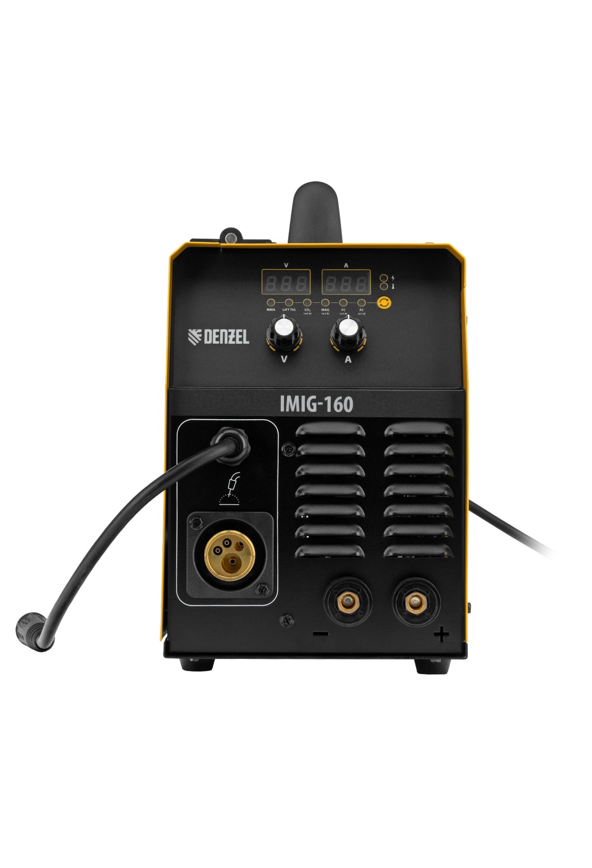 Инверторный аппарат полуавтоматической сварки Denzel IMIG-160 94314 работает со сварочным током до 160 А, характеризуется продолжительностью включения 60% и совместим с катушками до 5 кг. Используется для сварки углеродистых и нержавеющих сталей с использованием постоянного тока. Эффективен для работы с тонкостенными заготовками.,Сварочный аппарат произведен по технологии IGBT, что обеспечивает стабильную и эффективную работу на протяжении длительного времени. Синергетическое управление упрощает работу и позволяет получить сварной шов неизменно высокого качества. Аппарат автоматически подбирает оптимальные значения напряжения, скорости подачи проволоки и другие параметры.