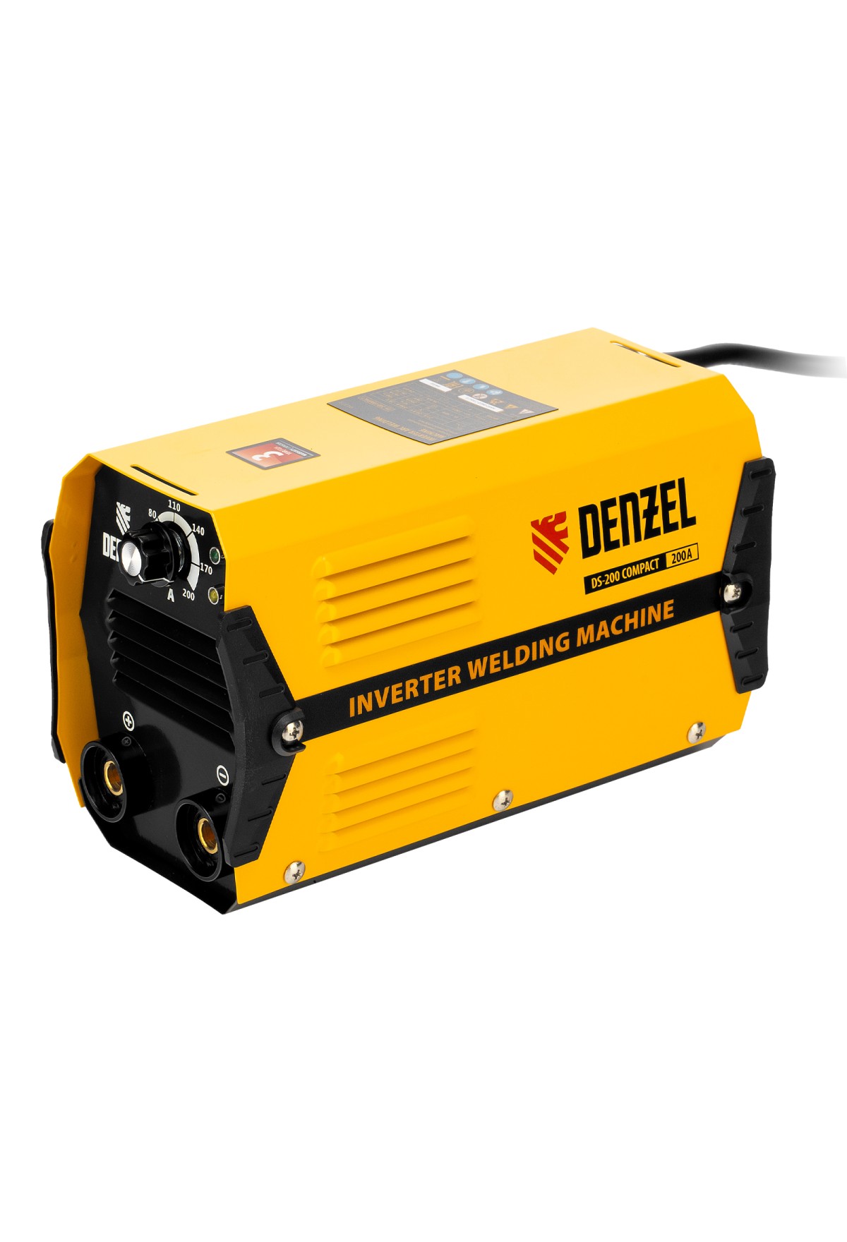 Инверторный аппарат дуговой сварки Denzel DS-200 Compact 94373 с максимальной силой тока 200 А имеет продолжительность включения 70% и работает с электродами диаметром 1,6-5 мм. Используется для сварки стальных металлоконструкций, будет полезен в мастерской, гараже или на даче. При отсутствии розетки его можно подключить к генератору. Аппарат прост в эксплуатации и подойдет как профессионалу, так и начинающему мастеру. Способен работать даже при низком входном напряжении 150 В, имеет высокий показатель продолжительности включения 70% и быстро остывает, что увеличивает скорость и эффективность сварки.