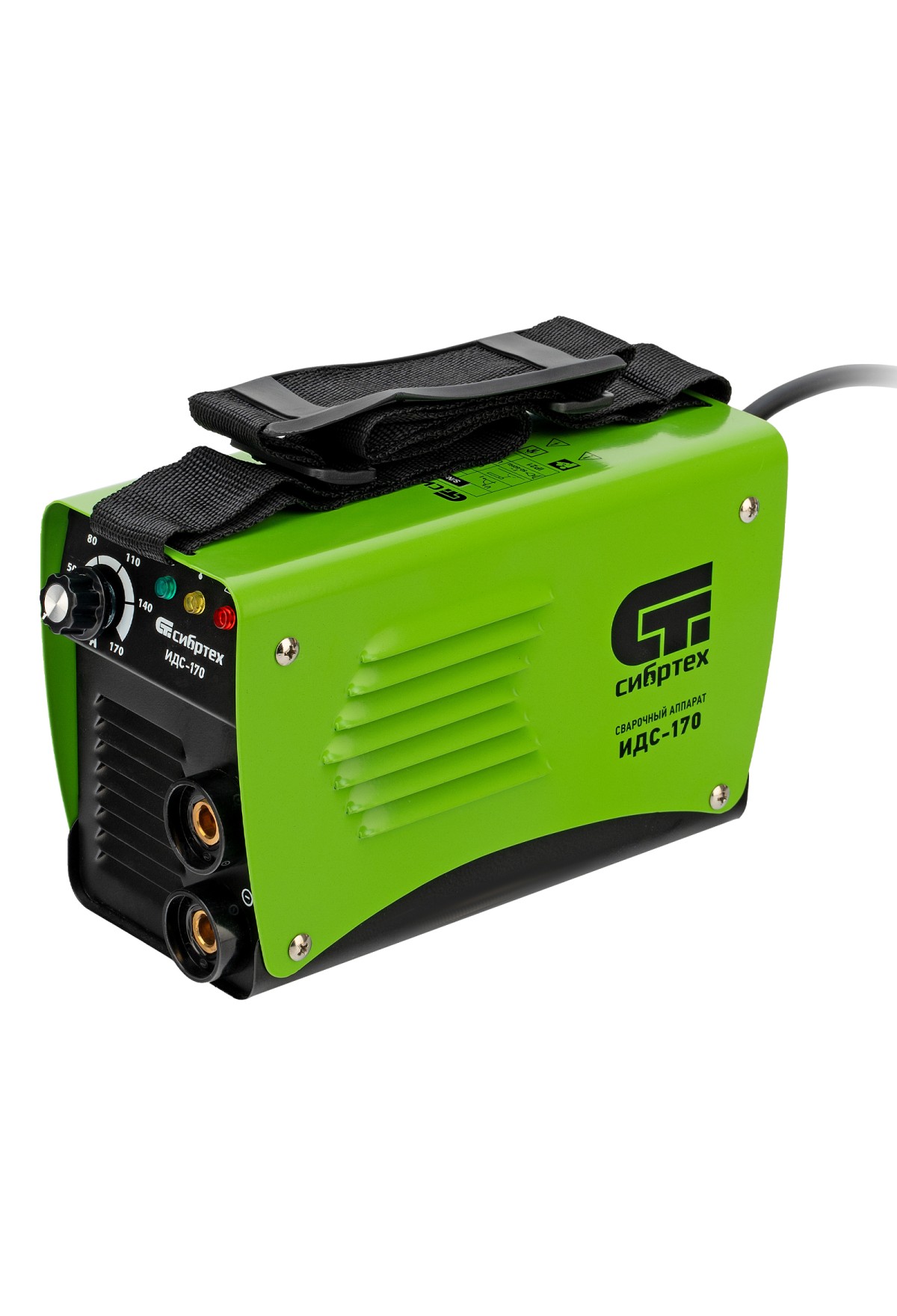 Инверторный аппарат дуговой сварки Сибртех ИДС-170 94375 с максимальной силой сварочного тока 170 А и продолжительностью включения 80% работает с электродами диаметром 1,6-3,2 мм. Используется для сварки стальных конструкций. Будет полезен в гараже, на строительной площадке, а также в сфере ЖКХ и в быту. Аппарат стабильно работает даже при пониженном входном напряжении 150 Вт. Благодаря простому управлению с ним легко справится начинающий пользователь.
