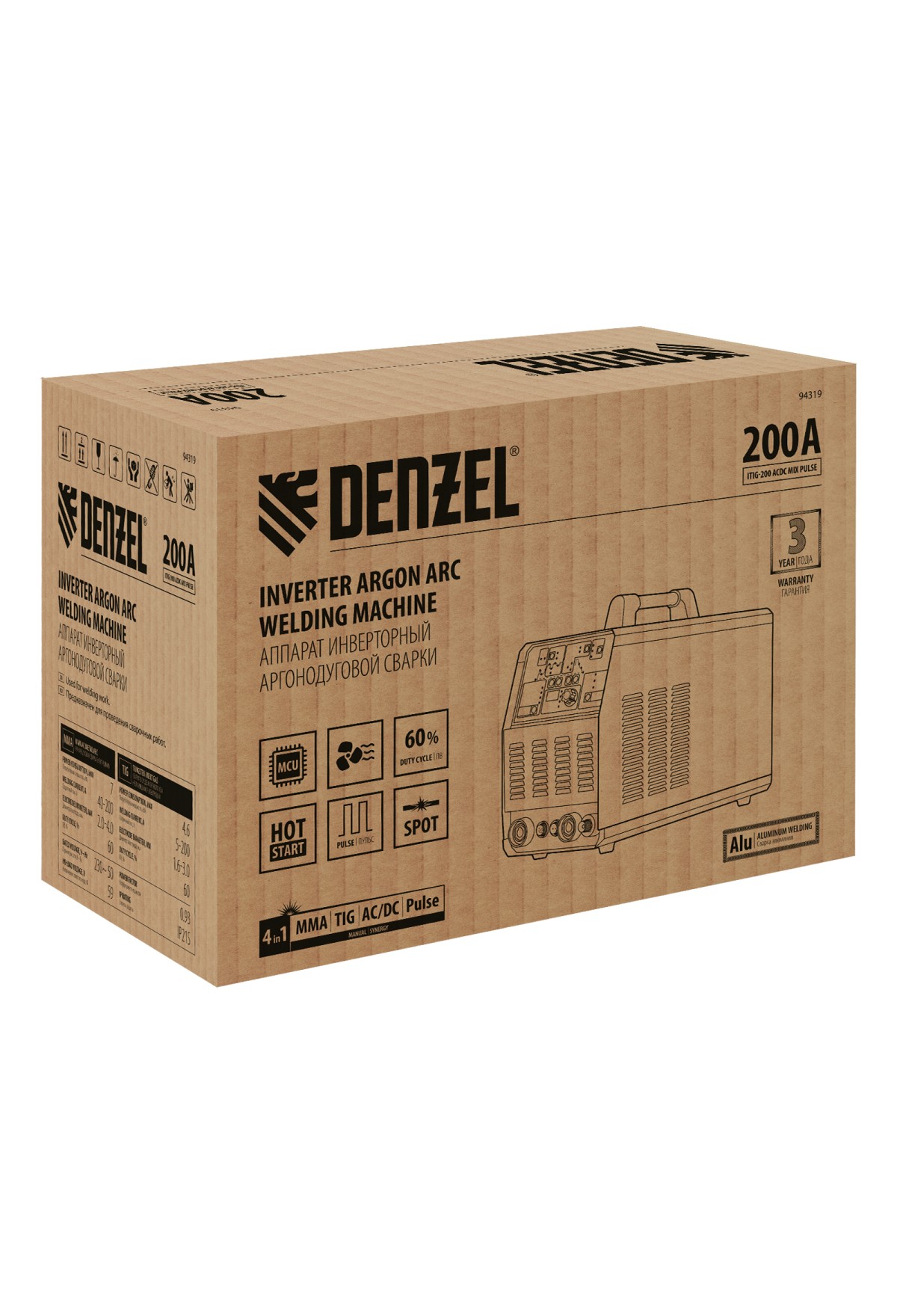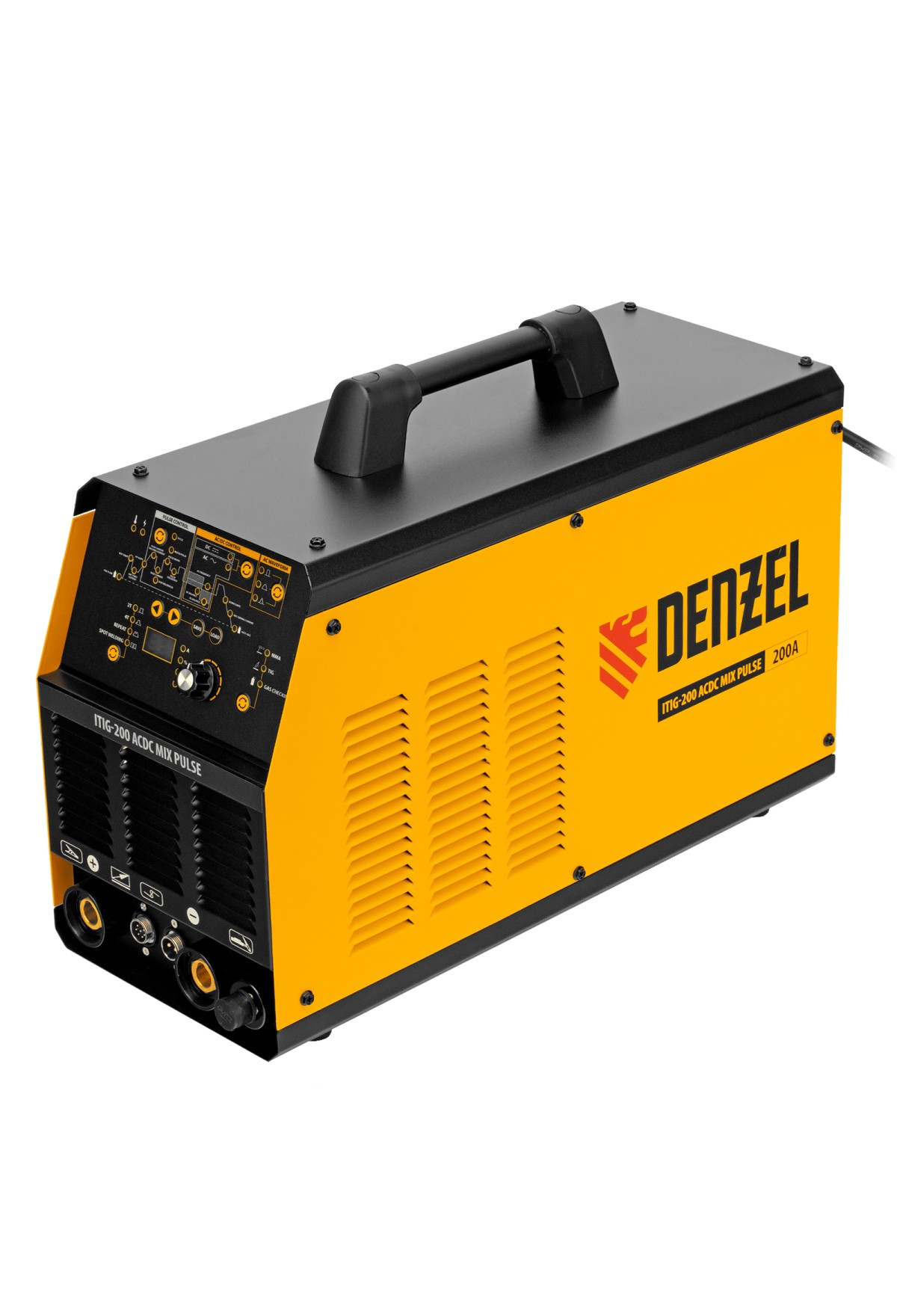 Инверторный аппарат аргонодуговой сварки Denzel ITIG-200 ACDC Mix Pulse 94319 работает с максимальным сварочным током 200 А, продолжительность включения составляет 60%. Позволяет работать с использованием как переменного, так и постоянного тока, поэтому подходит для сварки не только сплавов из стали, но и цветных металлов, таких как медь, титан, а также алюминия и его сплавов. Используется для аргонодуговой сварки неплавящимся электродом (TIG) и MMA-сварки покрытым электродом диаметром 4-5 мм. Возможны следующие режимы TIG-сварки: на постоянном токе DC, импульсным постоянным током Pulse DC, сварка переменным током AC, а также переменным током с режимом глубокого проникновения в импульсном режиме MIXTIG AC. Сварочный аппарат изготовлен с использованием передовой технологии IGBT, обеспечивает стабильный сварочный ток и высокий КПД в течение всего срока службы.