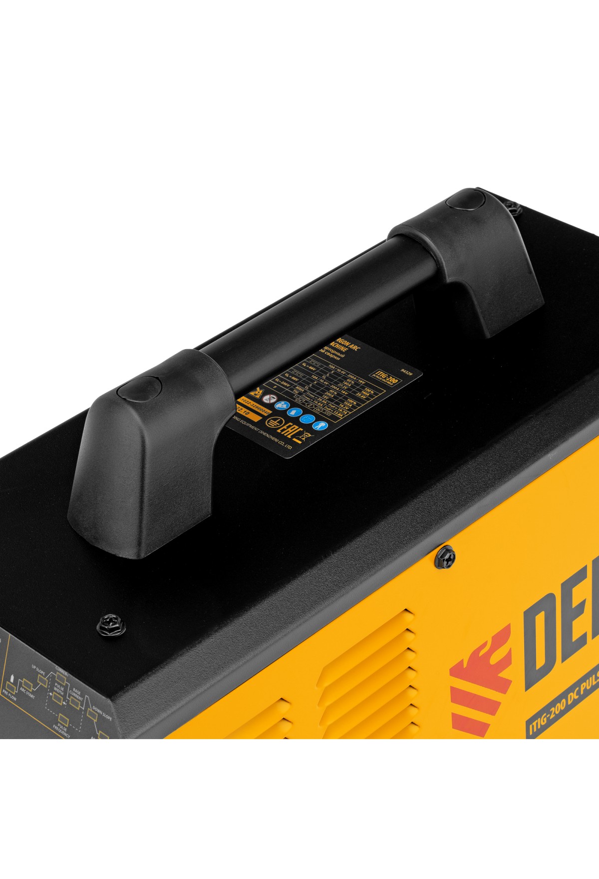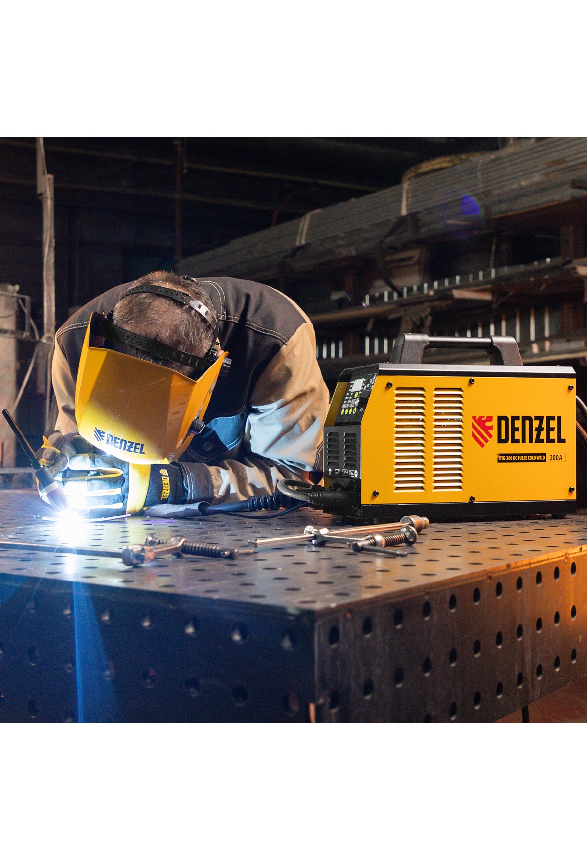Инверторный аппарат аргонодуговой сварки Denzel ITIG-200 DC Pulse Cold Weld 94329 работает с максимальным сварочным током 200 А, продолжительность включения составляет 60%. Позволяет работать с использованием постоянного тока, в том числе в импульсном режиме, поэтому подходит для сварки стали и ее сплавов, меди и других цветных металлов. Используется для аргонодуговой сварки неплавящимся электродом (TIG) и MMA-сварки покрытым электродом диаметром до 4-5 мм. Доступны следующие режимы TIG-сварки: сварка на постоянном токе DC, сварка импульсным постоянным током PULS DC.,Сварочный аппарат изготовлен с использованием передовой технологии IGBT, обеспечивает стабильный сварочный ток и высокий КПД в течение всего срока службы, способен работать с очень тонким металлом.