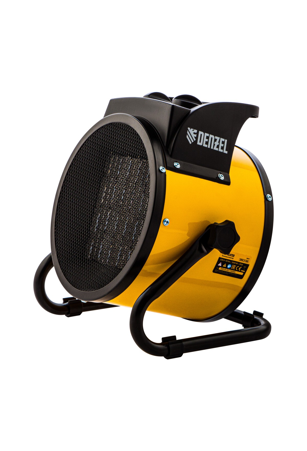 Тепловая пушка (тепловентилятор) Denzel DHC 3-150 96431 с керамическим нагревателем потребляет мощность 0,025, 1,5 или 3 кВт в зависимости от установленного режима и подходит для бытового и полупрофессионального применения. С ее помощью можно обогреть помещение площадью до 40 кв. м или дистанционно просушить поверхность после отделки (оштукатуренные и окрашенные стены, стяжки). Также устройство можно использовать как вентилятор в жару. Керамический нагревательный элемент не сушит воздух и не выделяет вредных веществ, поэтому тепловентилятор безопасен для людей и животных.