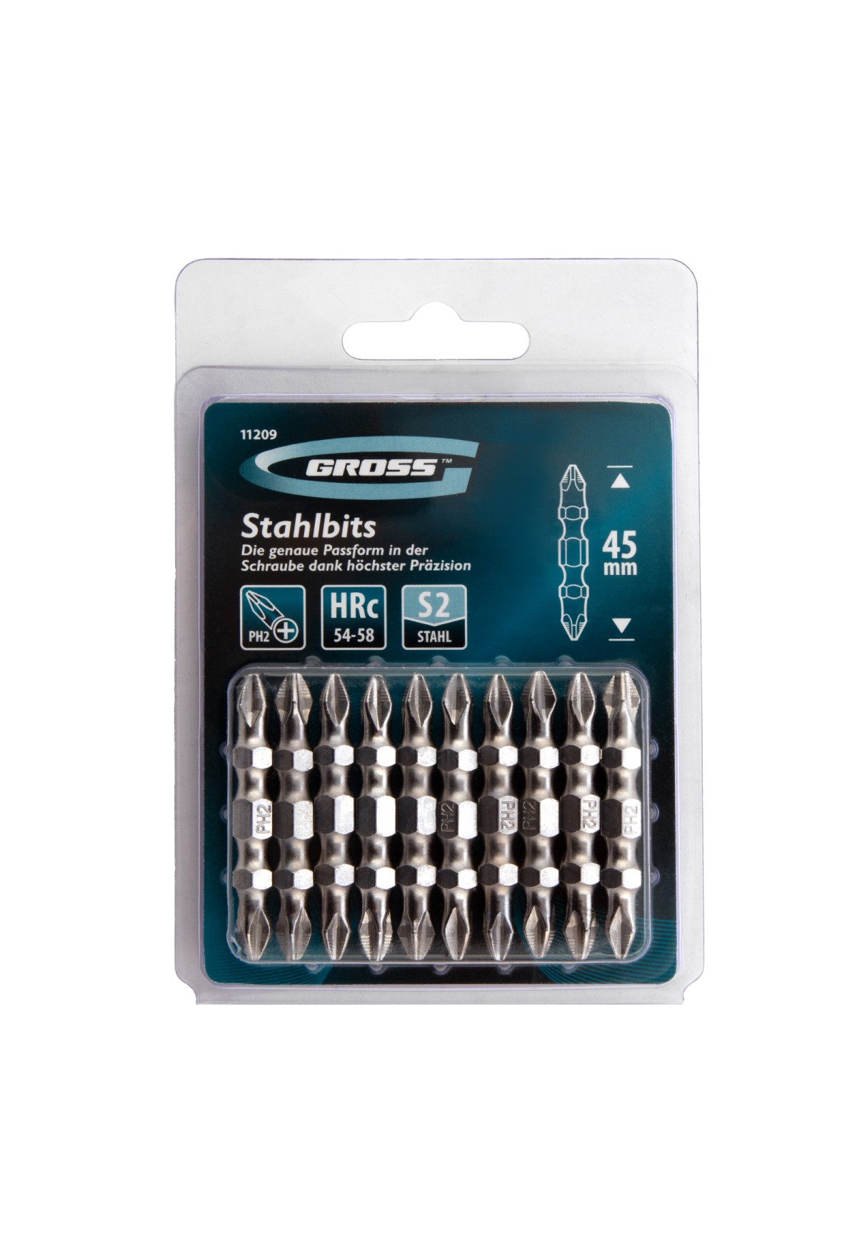 Технические характеристики Бита двухсторонняя, PH2-PH2 х 45 мм, сталь S2, 10 шт. Gross