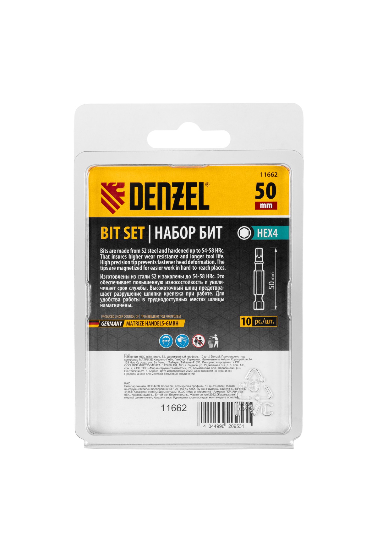 | Комплектация | Биты HEX4x50 мм - 10 шт |