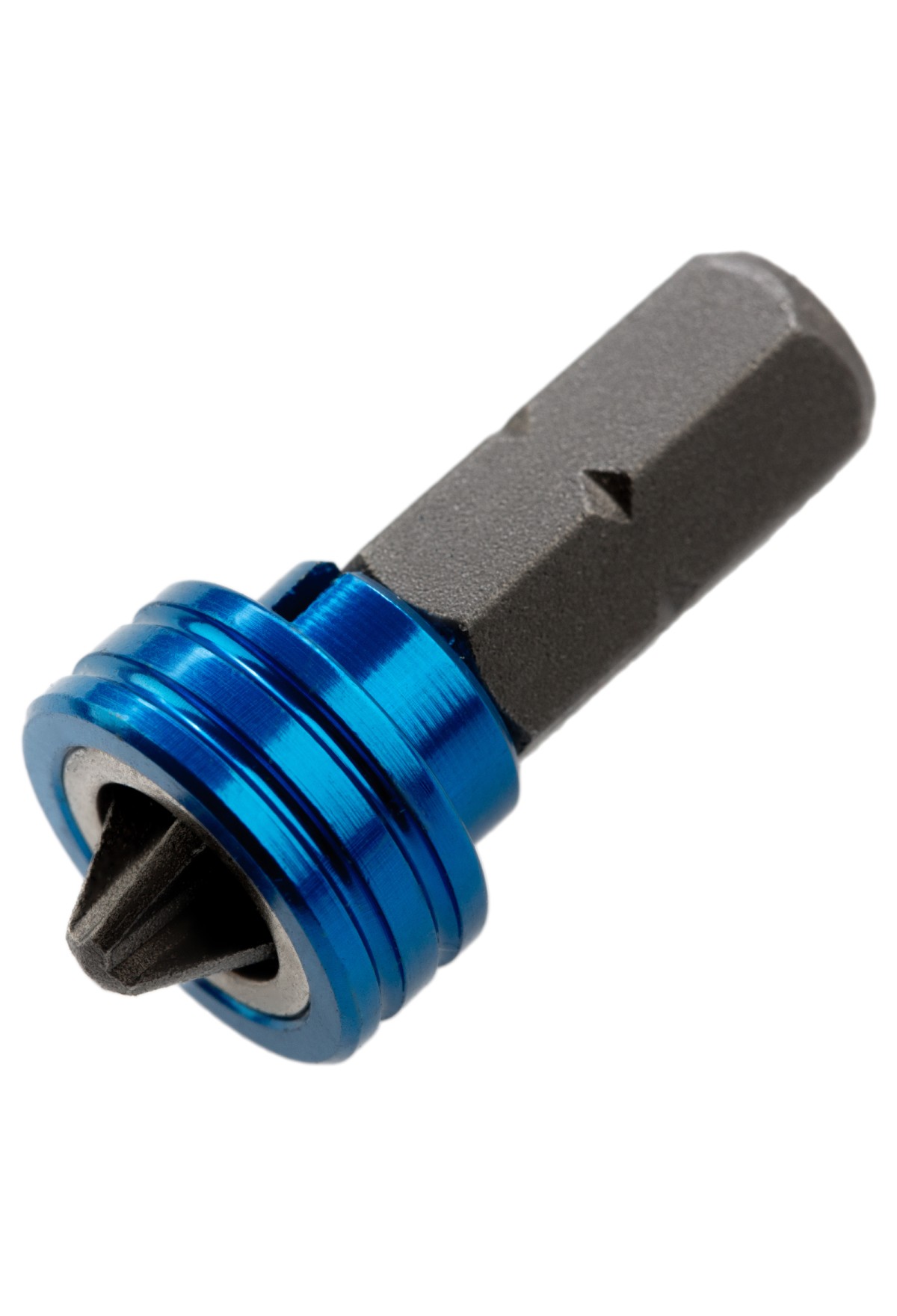 - Встроенный магнит — крепеж надежно фиксируется в шлице биты, что позволяет работать шуруповертом одной рукой, а другой удерживать ГКЛ.