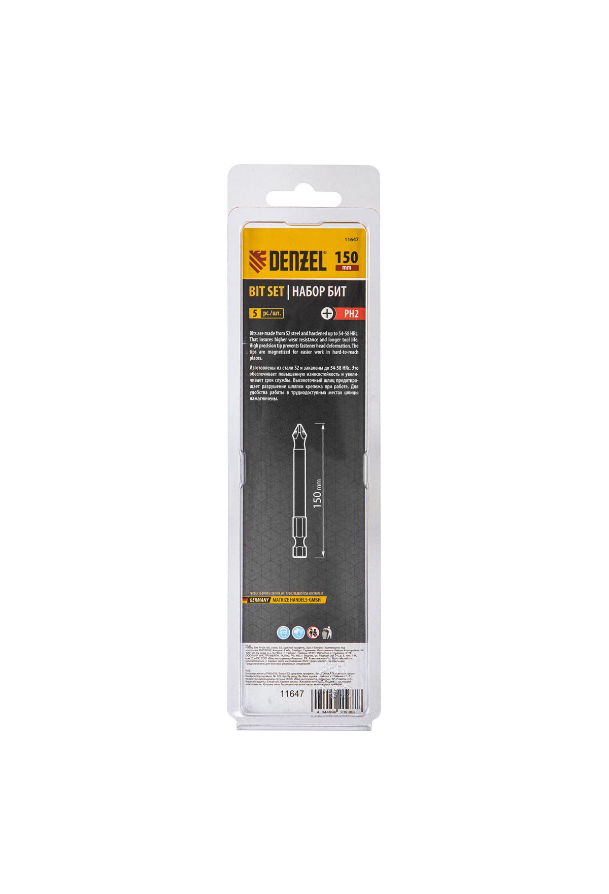 Технические характеристики Бита PH2х150, сталь S2, цилиндр., 5шт. Е 6,3 Denzel