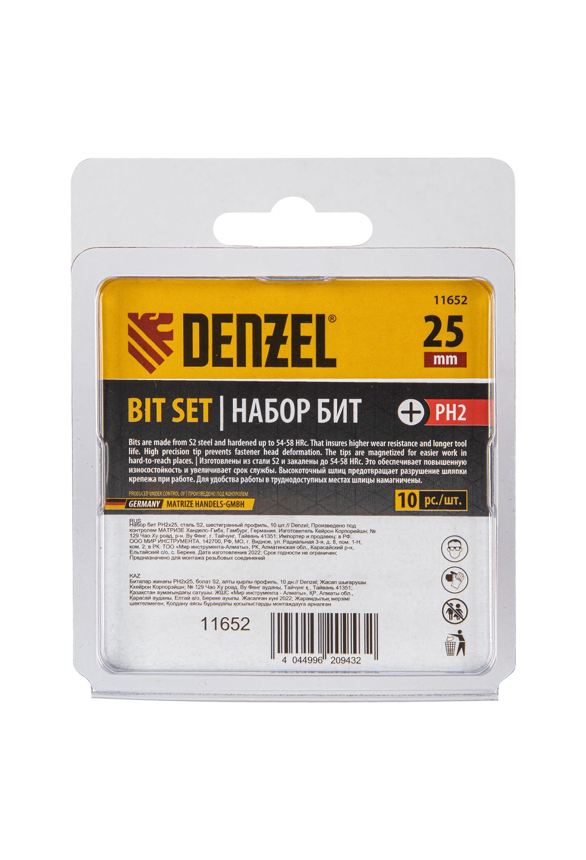 Набор бит PH2 х 25 мм Denzel 11652, из стали S2, состоит из 10 наиболее востребованных крестообразных насадок с хвостовиком 1/4"и предназначен для шуруповертов и отверток-адаптеров. Биты используются при монтаже и демонтаже большинства саморезов по дереву, шурупов и др. За счет оптимальной геометрии биты способны ввинтить и извлечь большое количество крепежа без потери рабочих свойств.