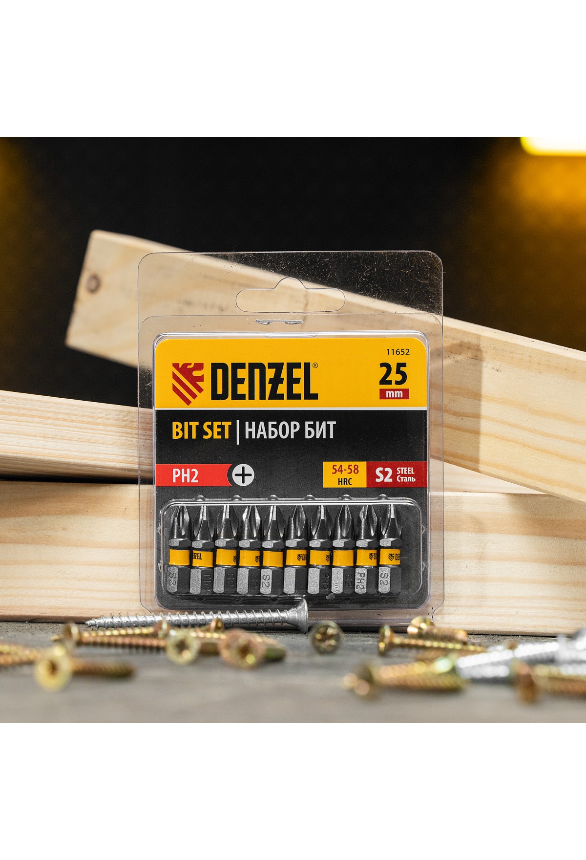 - Защита от подделок — цветное кольцо с логотипом ТМ Denzel на каждой бите подтверждает оригинальность товара.