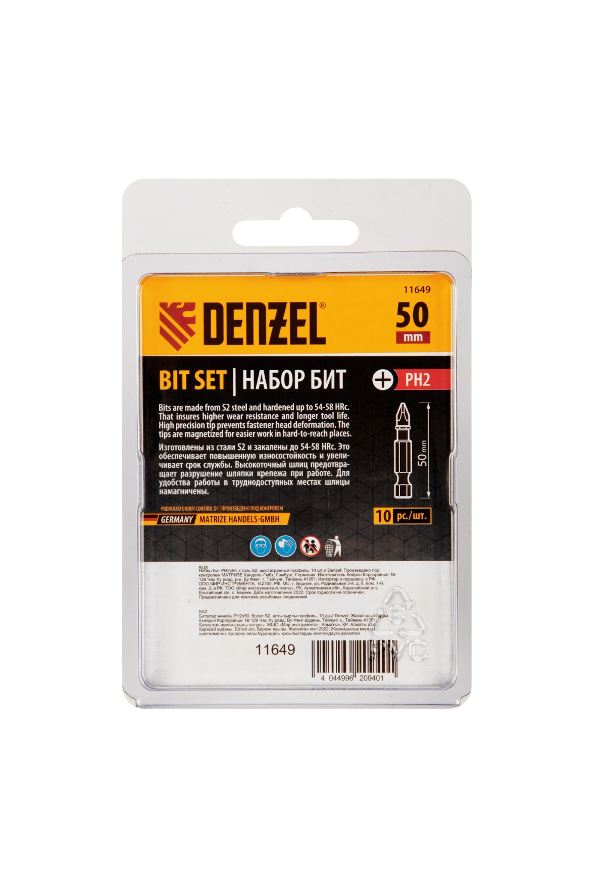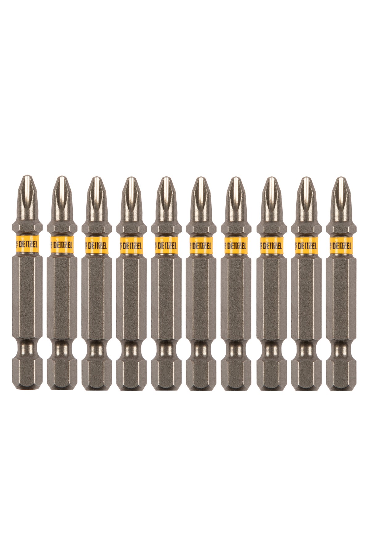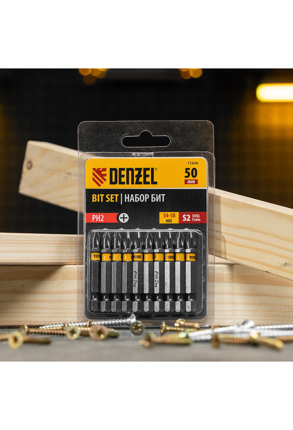 - Защита от подделок — цветное кольцо с логотипом ТМ Denzel на каждой бите подтверждает оригинальность товара.