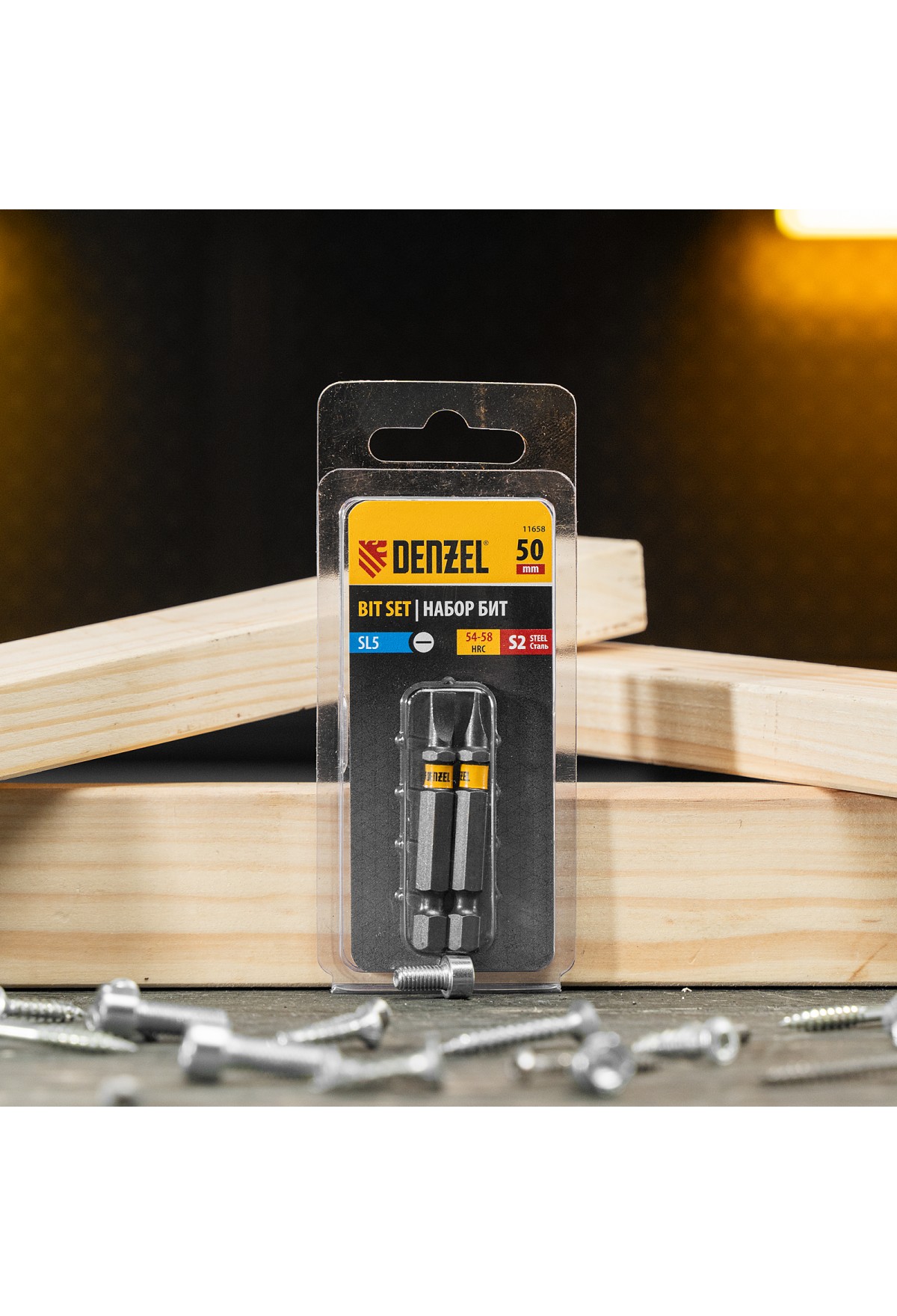 • Защита от подделок — цветное кольцо с логотипом ТМ Denzel на каждой бите подтверждает оригинальность товара.