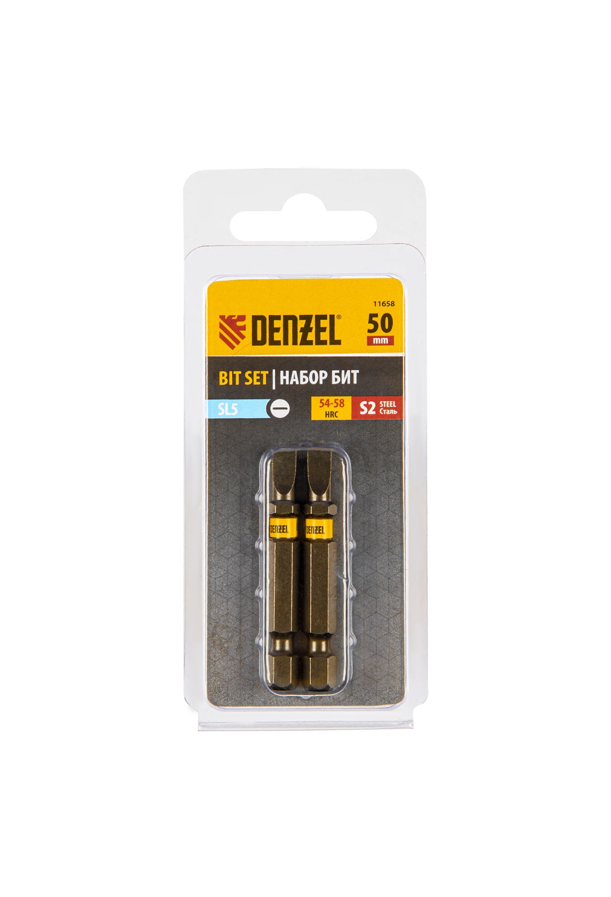 Технические характеристики Бита SL5,0х50, сталь S2, шестигранный профиль, 2 шт. Е 6,3 Denzel