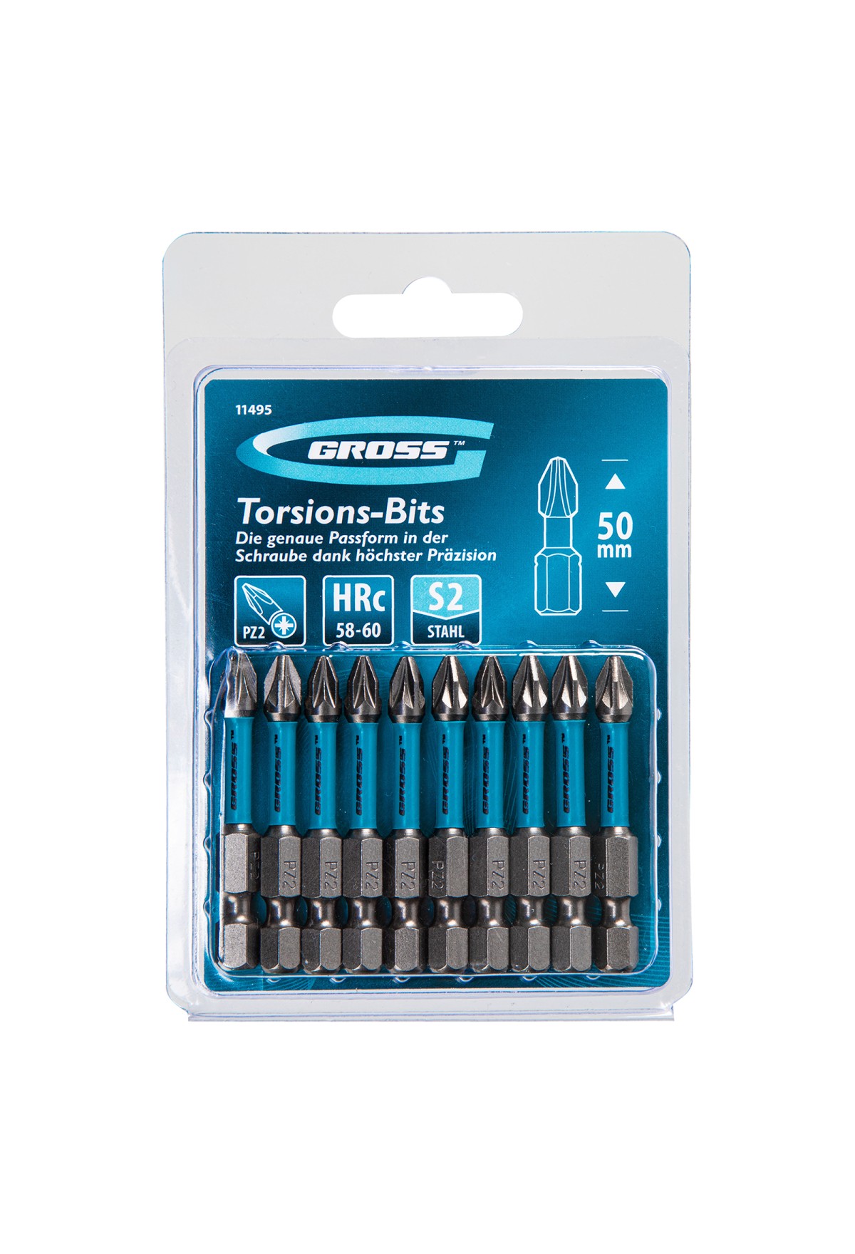 Набор торсионных бит PZ2 x 50 мм Gross 11495, 10 шт., предназначен для монтажа и демонтажа резьбовых соединений с помощью ударного шуруповерта. Он незаменим в строительных, слесарных и монтажных работах, в автосервисах, при проведении ремонта в доме. Торсионная зона способна пружинить, за счет чего она частично амортизирует тангенциальный удар от шуруповерта. Такое решение позволяет равномерно распределить нагрузку по бите и избежать поломки шлица.