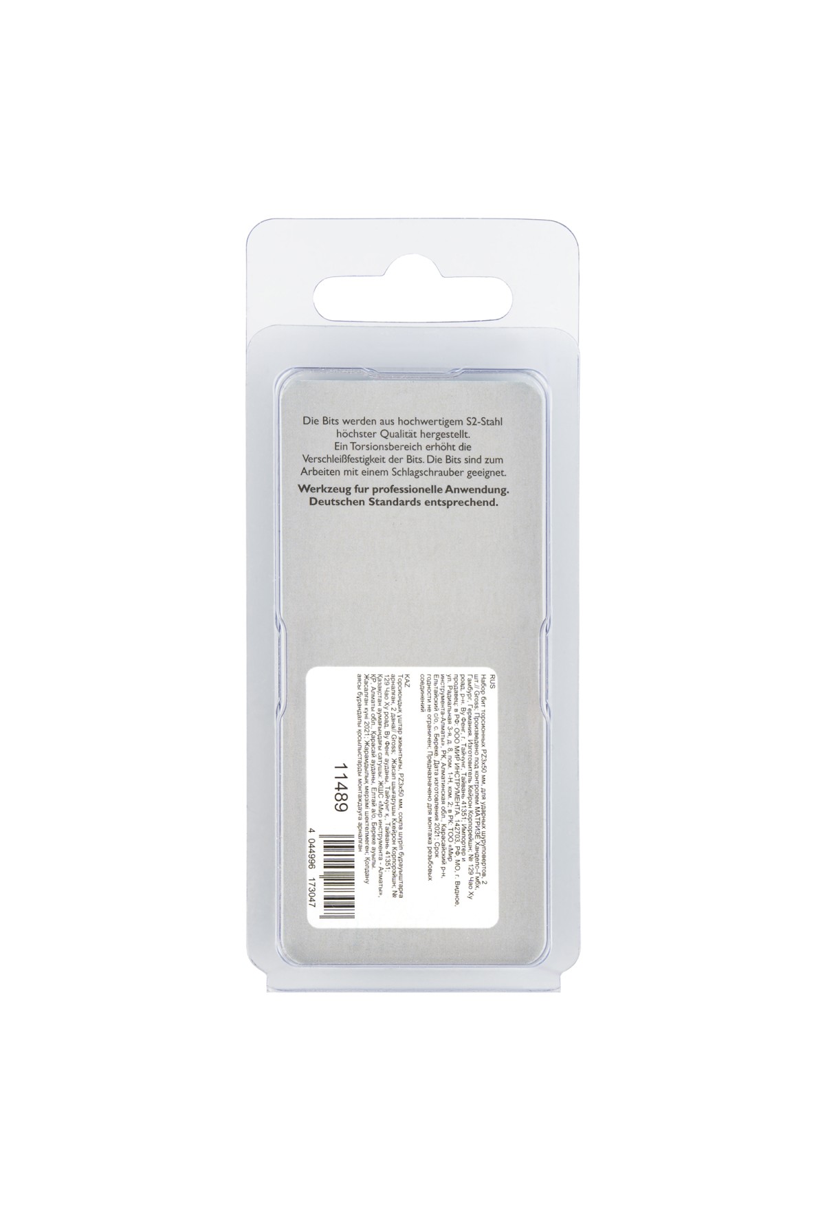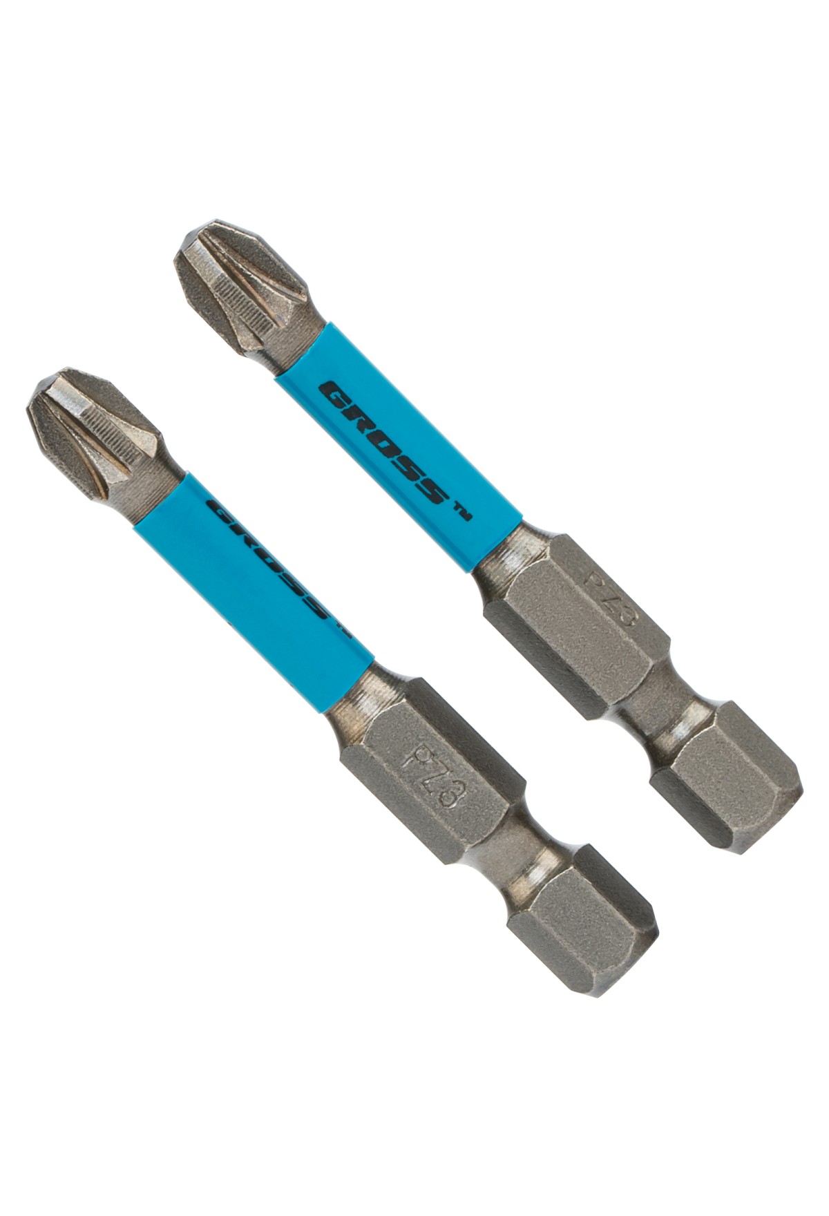 Набор торсионных бит PZ3 x 50 мм Gross 11489, 2 шт., предназначен для монтажа и демонтажа резьбовых соединений с помощью ударного шуруповерта. Он незаменим в строительных, слесарных и монтажных работах, в автосервисах, при проведении ремонта в доме. Торсионная зона способна пружинить, за счет чего она частично амортизирует тангенциальный удар от шуруповерта. Такое решение позволяет равномерно распределить нагрузку по бите и избежать поломки шлица.