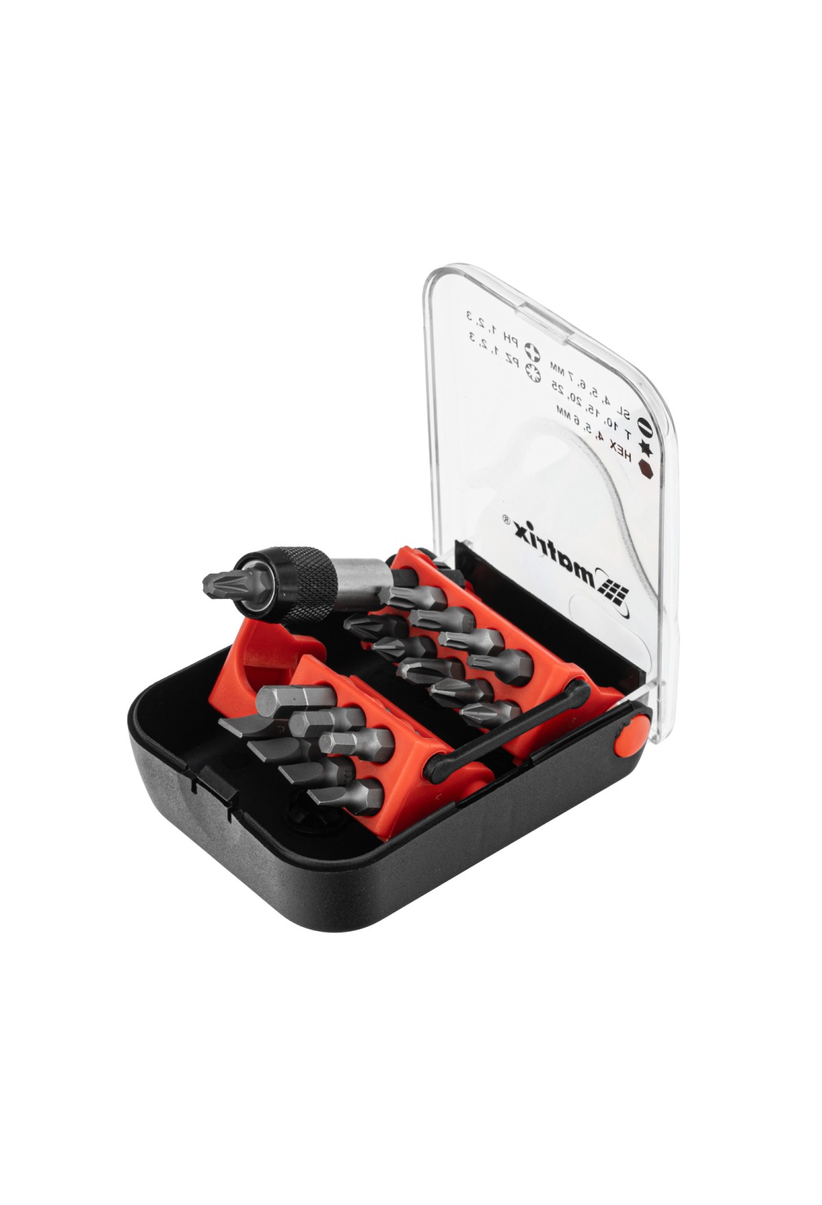 Набор Matrix 11316 включает 18 предметов из стали S2: биты и адаптер для бит, упакованные в пластиковый бокс. Подходит для шуруповертов, отверток для сменных бит и реверсивных отверток, и применяется для проведения монтажных/демонтажных работ с резьбовыми соединениями. В комплект входят биты следующих размеров: PH и PZ 1-3 мм, SL 4-7 мм, TORX 10 мм, 15 мм, 20 мм, 25 мм и HEX 4-6 мм. Набор будет полезен для ремонта техники, сборки мебели, пригодится дома, на даче и в гараже.