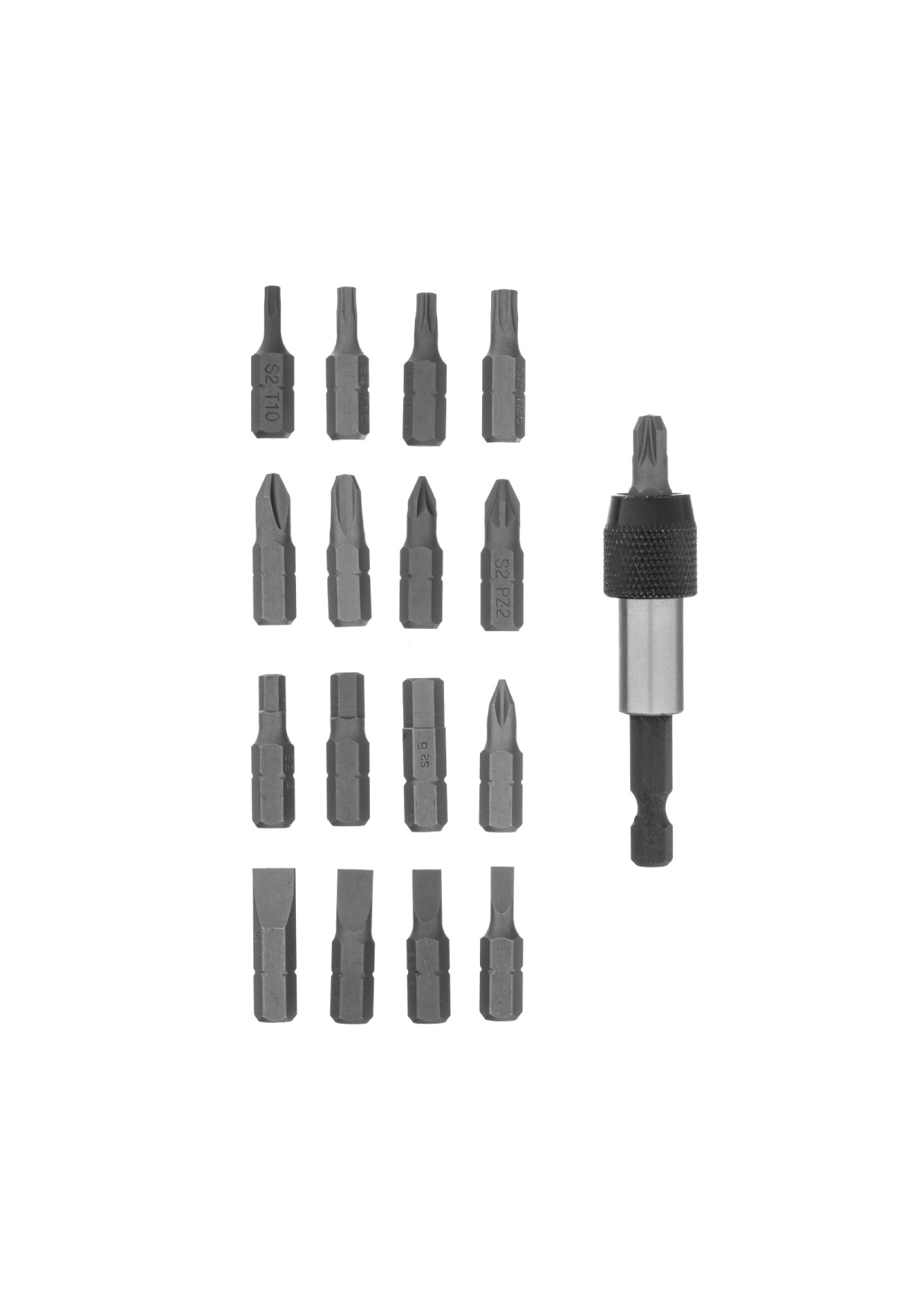 | Комплектация | Пластиковый кейс - 1 штБиты: PH1, PH2, PH3, PZ1, PZ2, PZ3, SL4, SL5, SL6, SL7, T10, T15, T20, T25, H4, H5, H6 - 17 штБитодержатель с быстрозажимным механизмом - 1 шт |