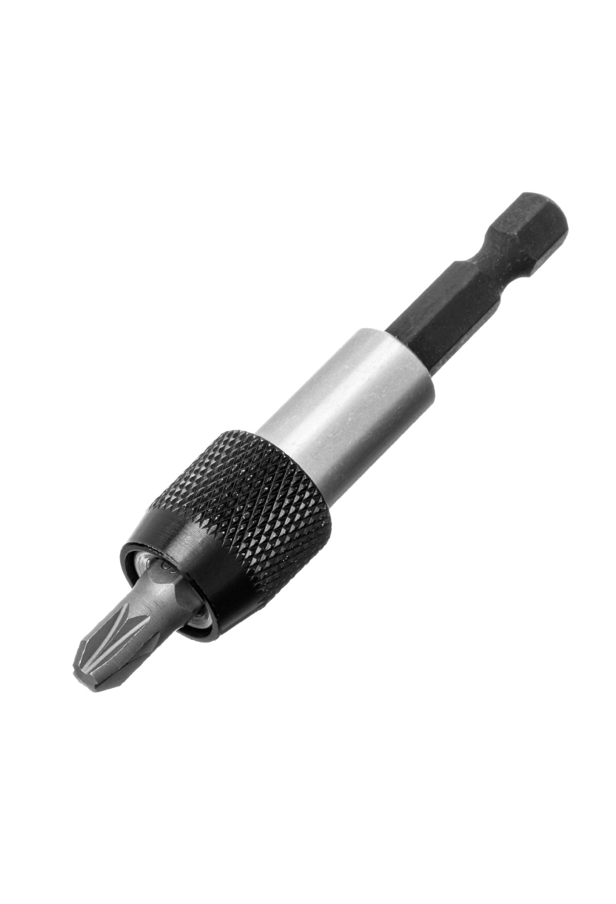 - Надежная фиксация — быстрозажимной механизм крепко удерживает биту в адаптере.