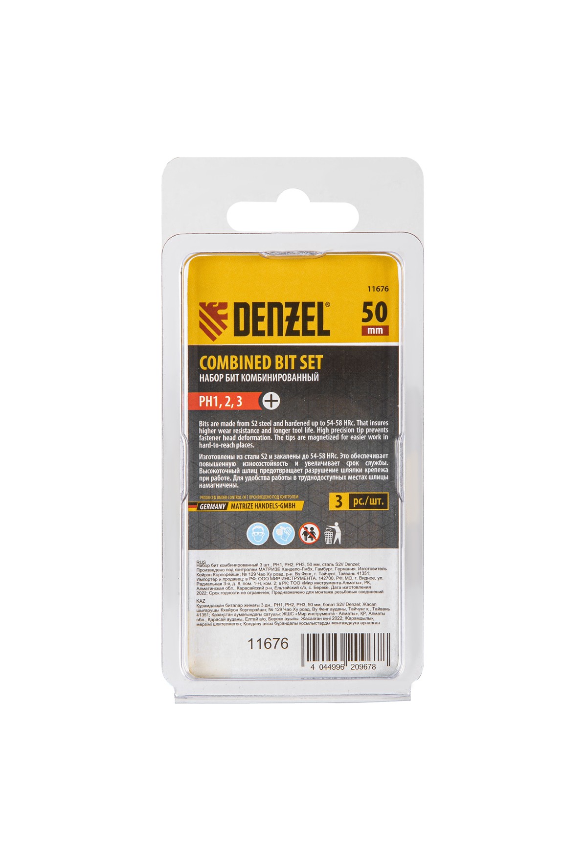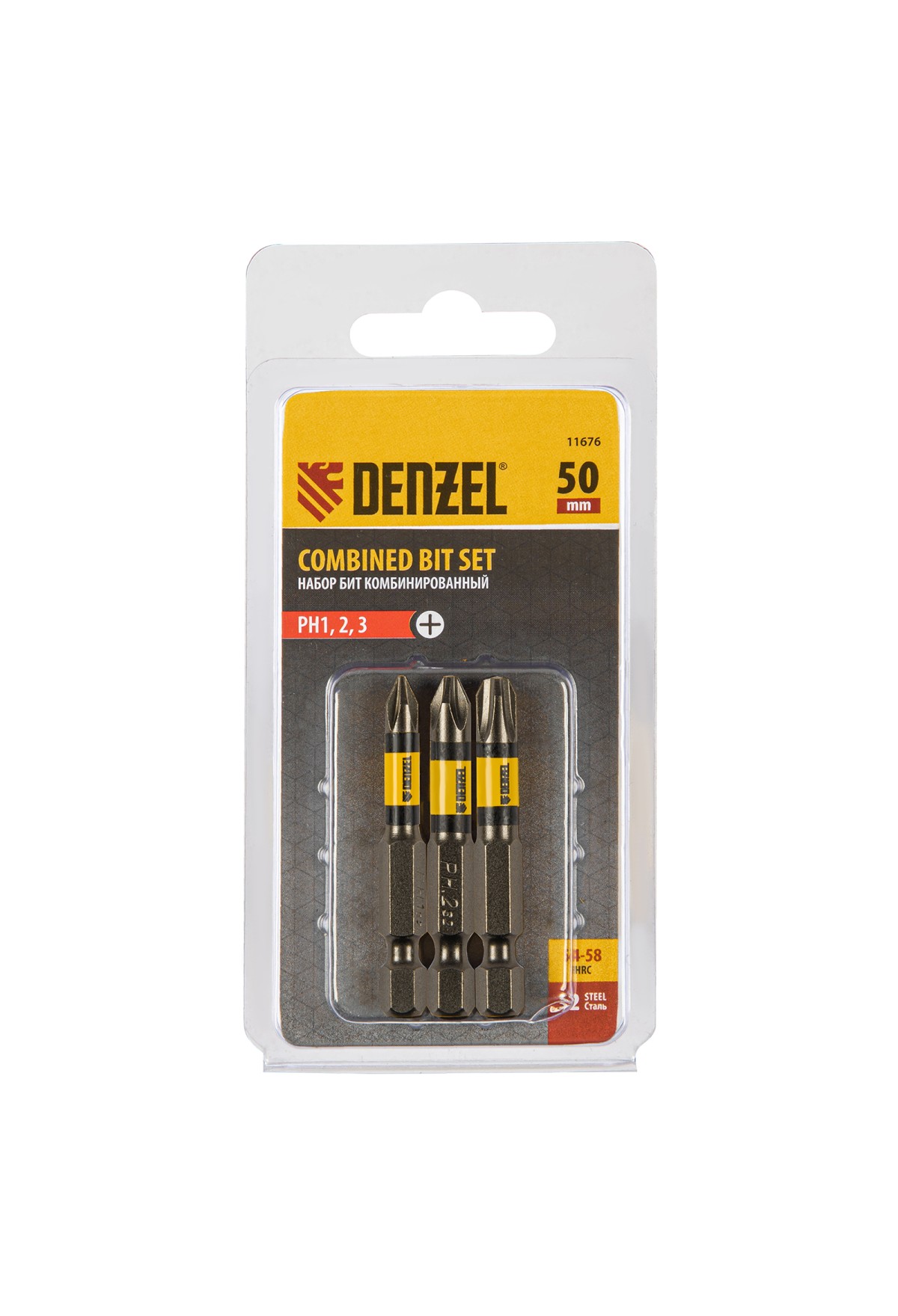 Технические характеристики Набор бит комбинированный 3 шт., РН1, РН2, РН3, 50 мм, сталь S2 Denzel